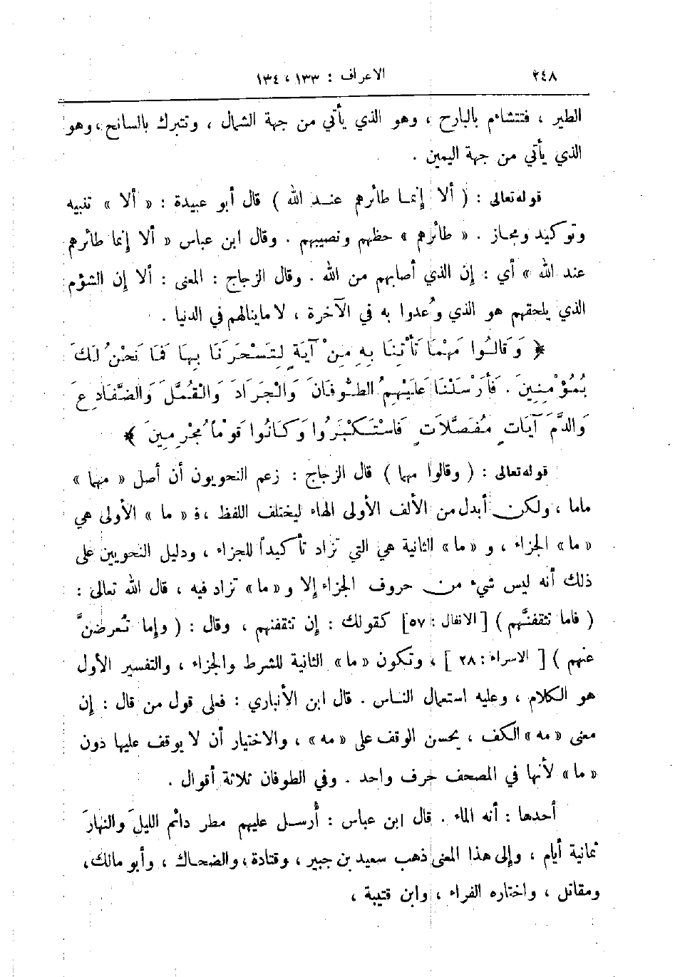 أحدها أنه الماء قال ابن عباس أرسل عليهم مطر دائم الليل والنهار ثمانية أيام وإلى هذا المعنى ذهب سعيد بن جبير وقتادة والضحاك وأبو مالك ومقاتل واختاره الفراء وابن قتيبة
