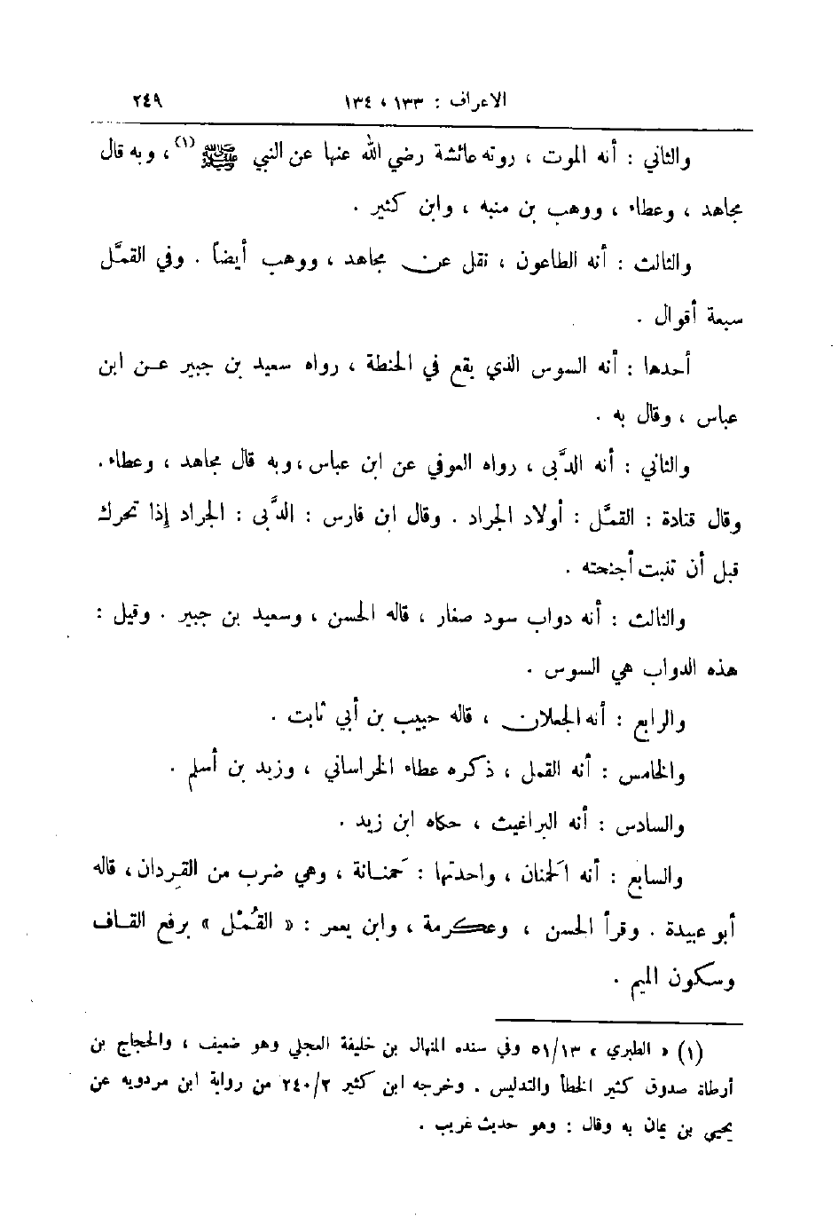 والثالث أنه الطاعون نقل عن مجاهد ووهب أيضا وفي القمل سبعة أقوال