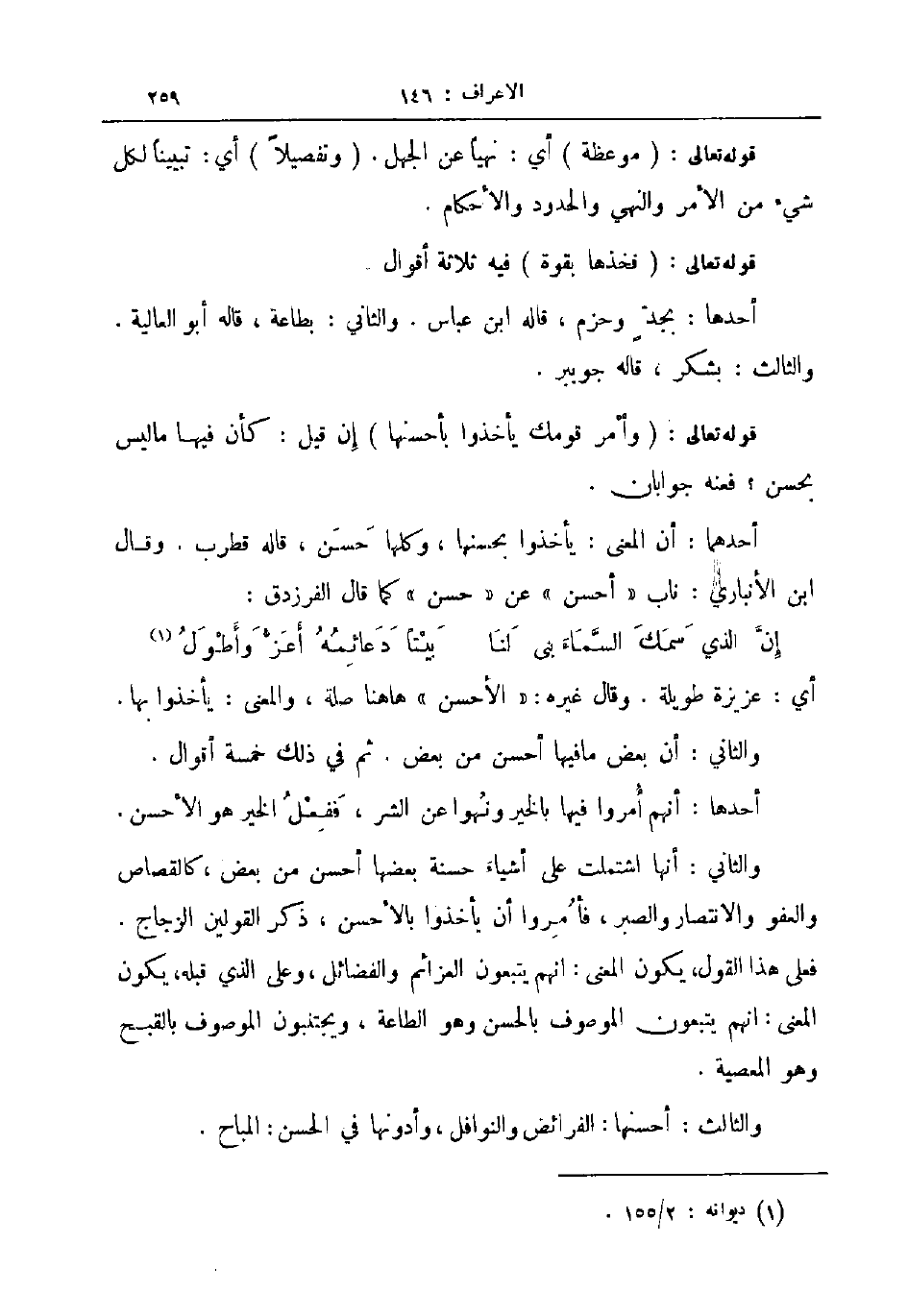 أحدهما أن المعنى يأخذوا بحسنها وكلها حسن قاله قطرب وقال ابن الانباري ناب أحسن عن حسن كما قال الفرزدق ... إن الذي سمك السماء بنى لنا ... بيتا دعائمه أعز وأطول ...