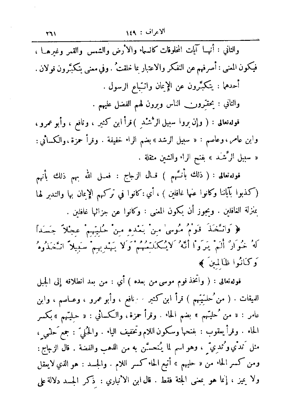 قوله تعالى واتخذ قوم موسى من بعده أي من بعد انطلاقه إلى الجبل للميقات من حليهم قرأ ابن كثير ونافع وأبو عمرو وعاصم وابن عامر من حليهم بضم الحاء وقرأ حمزة والكسائي حليهم بكسر الحاء وقرأ يعقوب بفتحها وسكون اللام وتخفيف الياء والحلي جمع حلي مثل ثدي وثدي وهو اسم لما يتحسن به من الذهب والفضة قال الزجاج ومن كسر الحاء من حليهم أتبع الحاء كسر اللام والجسد هو الذي لا يعقل ولا يميز إنما هو بمعنى الجثة فقط قال ابن الانباري ذكر الجسد دلالة على