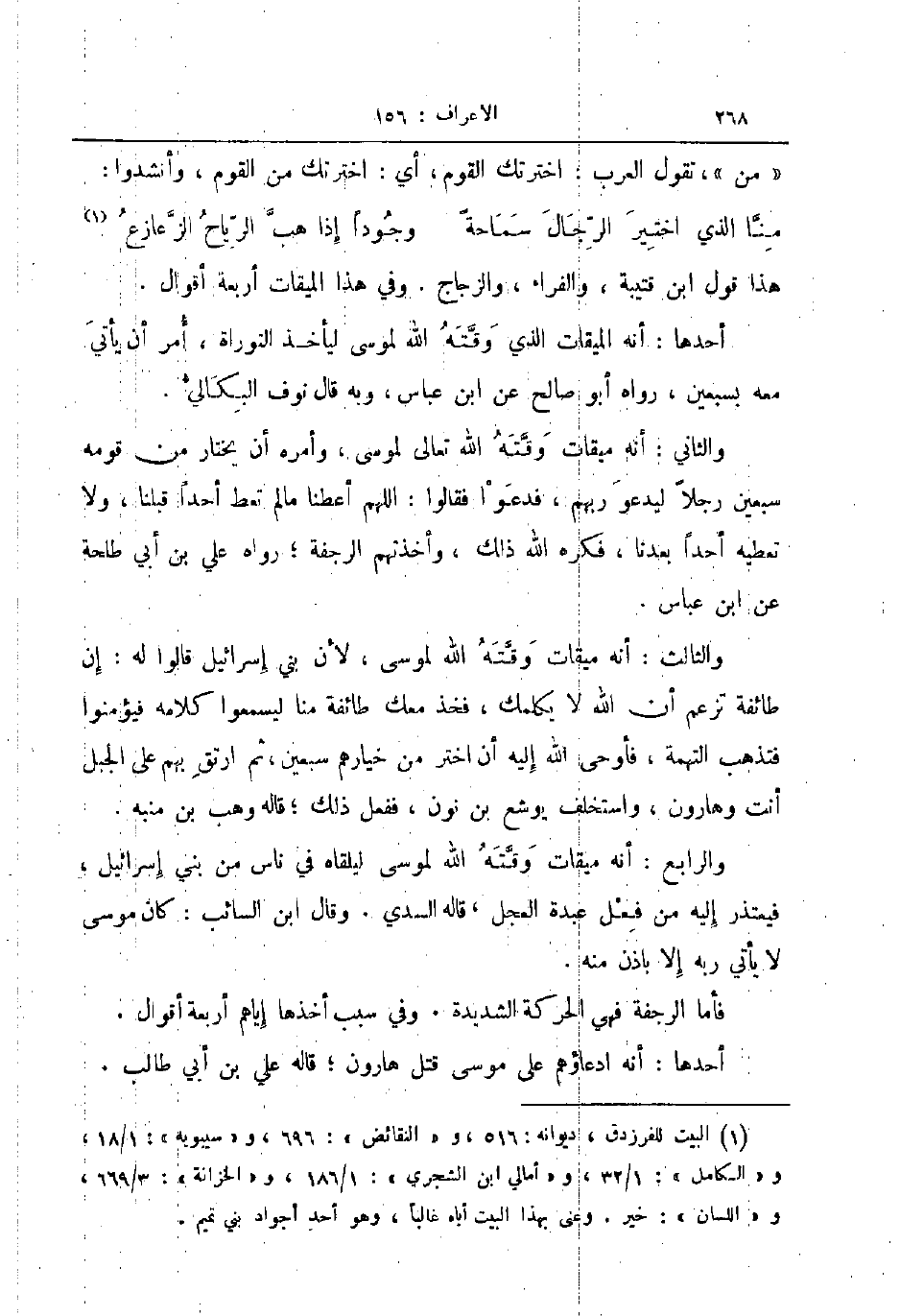 والثالث أنه ميقات وقته الله لموسى لأن بني إسرائيل قالوا له إن طائفة تزعم أن الله لا يكلمك فخذ معك طائفة منا ليسمعوا كلامه فيؤمنوا فتذهب التهمة فأوحى الله إليه أن اختر من خيارهم سبعين ثم ارتق بهم على الجبل انت وهارون واستخلف يوشع بن نون ففعل ذلك قاله وهب بن منبه