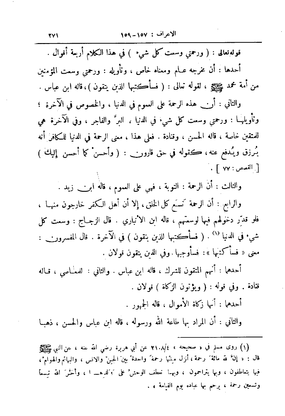 والرابع أن الرحمة تسع كل الخلق إلا أن أهل الكفر خارجون منها فلو قدر دخولهم فيها لو سعتهم قاله ابن الانباري قال الزجاج وسعت كل شيء في الدنيا فسأكتبها للذين يتقون في الآخرة قال المفسرون معنى فسأكتبها فسأوجبها وفي الذين يتقون قولان