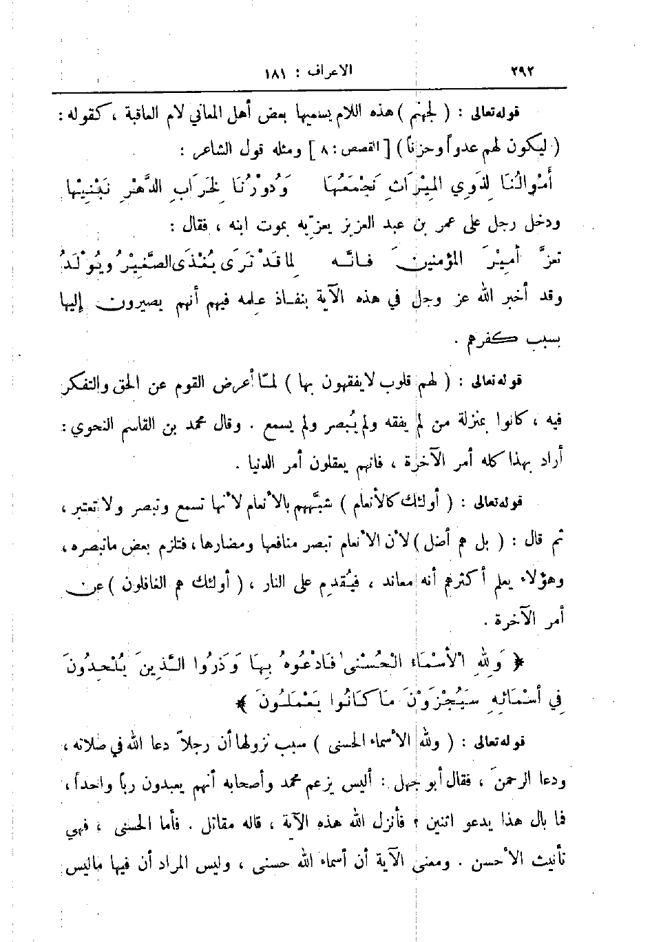 قوله تعالى أولئك كالأنعام شبههم بالأنعام لأنها تسمع وتبصر ولا تعتبر ثم قال بل هم أضل لأن الأنعام تبصر منافعها ومضارها فتلزم بعض ما تبصره وهؤلاء يعلم أكثرهم أنه معاند فيقدم على النار أولئك هم الغافلون عن أمر الآخرة