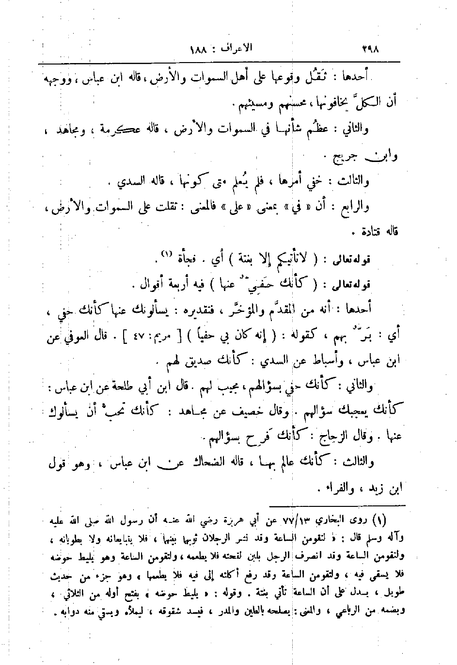 والثاني كأنك حفي بسؤالهم مجيب لهم قال ابن أبي طلحة عن ابن عباس كأنك يعجبك سؤالهم وقال خصيف عن مجاهد كأنك تحب أن يسألوك عنها وقال الزجاج كأنك فرح بسؤالهم