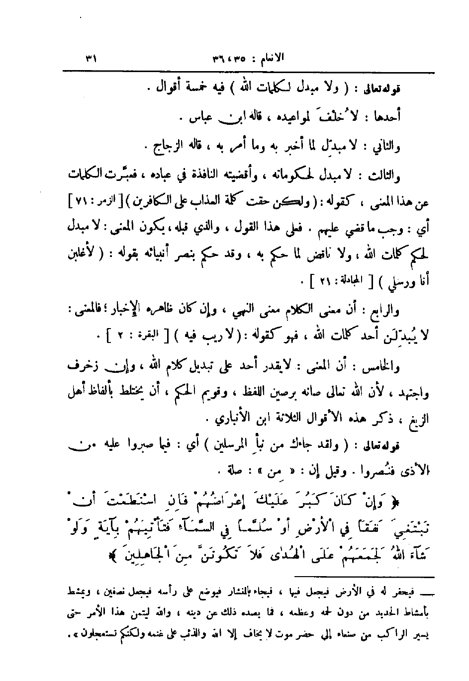 قوله تعالى ولا مبدل لكلمات الله فيه خمسة أقوال
