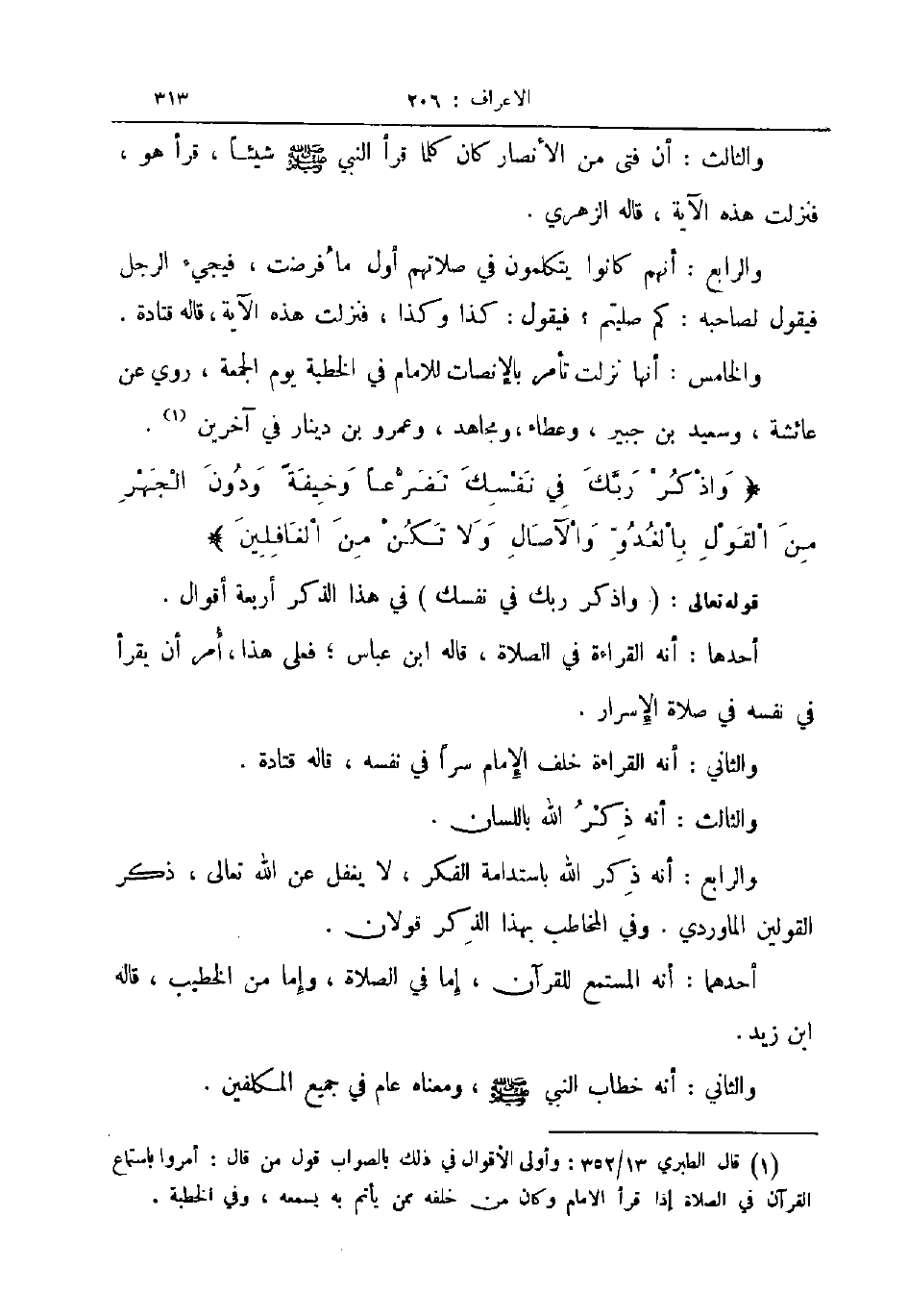 والخامس أنها نزلت تأمر بالإنصات للامام في الخطبة يوم الجمعة روي عن عائشة وسعيد بن جبير وعطاء ومجاهد وعمرو بن دينار في آخرين