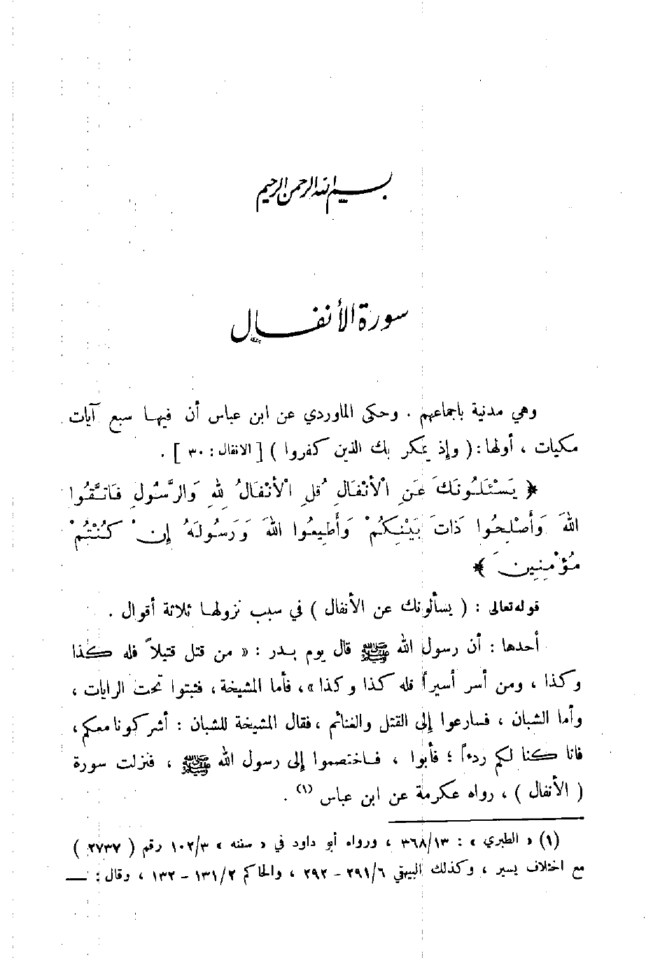 قوله تعالى يسألونك عن الأنفال في سبب نزولها ثلاثة أقوال