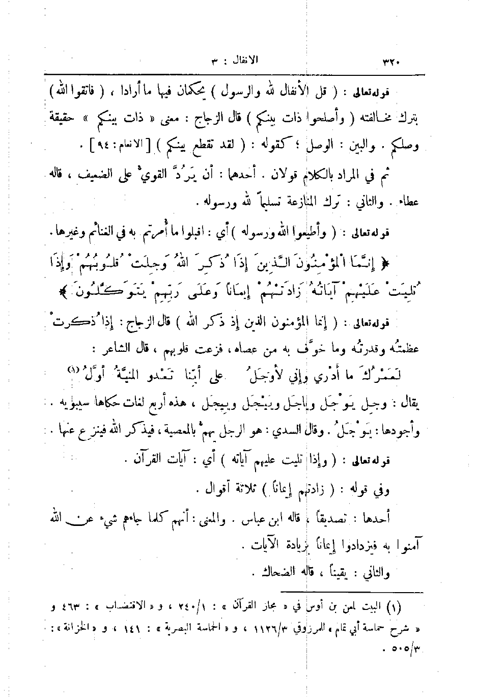 قوله تعالى إنما المؤمنون الذين إذا ذكر الله قال الزجاج إذا ذكرت عظمته وقدرته وما خوف به من عصاه فزعت قلوبهم قال الشاعر ... لعمرك ما أدري وإني لأوجل ... على أينا تعدو المنية أول ...