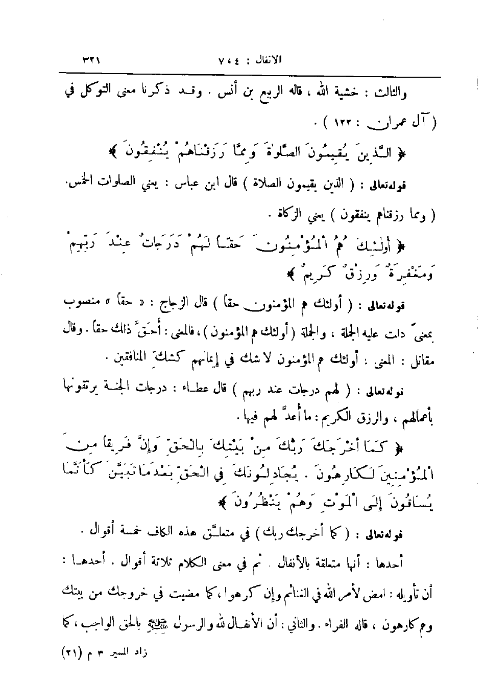 أحدها أنها متعلقة بالأنفال ثم في معنى الكلام ثلاثة أقوال أحدها أن تأويله امض لأمر الله في الغنائم وإن كرهوا كما مضيت في خروجك من بيتك وهم كارهون قاله الفراء والثاني أن الانفال لله والرسول صلى الله عليه و سلم بالحق الواجب كما