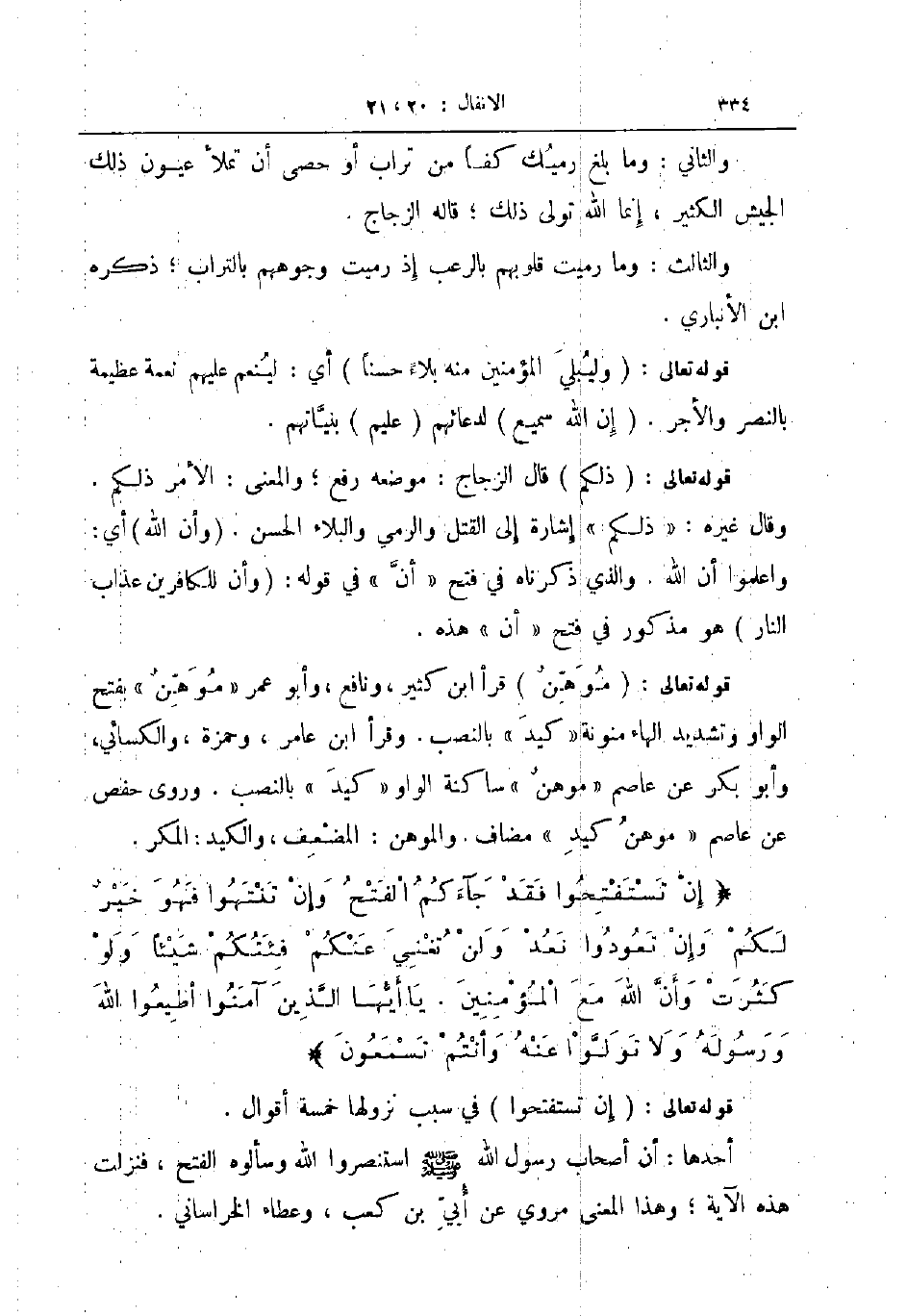 إن تستفتحوا فقد جآءكم الفتح وإن تنتهوا فهو خير لكم وإن تعودوا نعد ولن تغني عنكم فئتكم شيئا ولو كثرت وأن الله مع المؤمنين يا أيها الذين آمنوا أطيعوا الله ورسوله ولا تولوا عنه وأنتم تسمعون