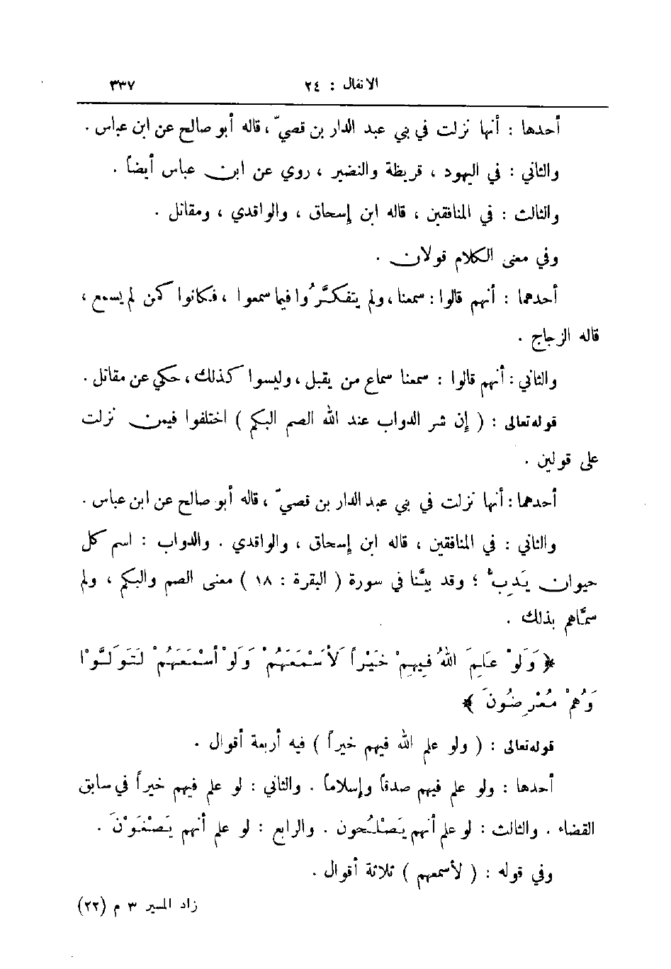 قوله تعالى إن شر الدواب عند الله الصم البكم اختلفوا فيمن نزلت على قولين