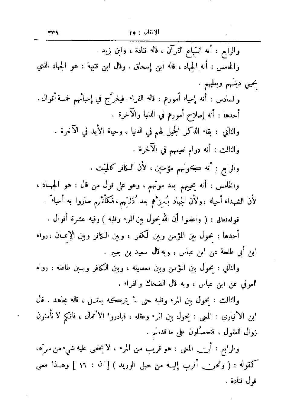 والخامس أنه الجهاد قاله ابن إسحاق وقال ابن قتيبة هو الجهاد الذي يحيي دينهم ويعليهم