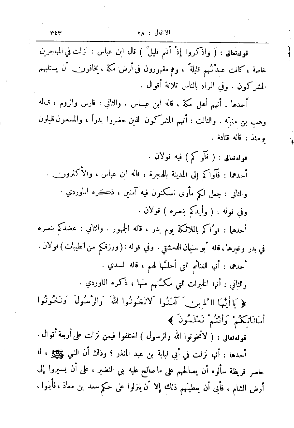 قوله تعالى لا تخونوا الله والرسول اختلفوا فيمن نزلت على أربعة اقوال