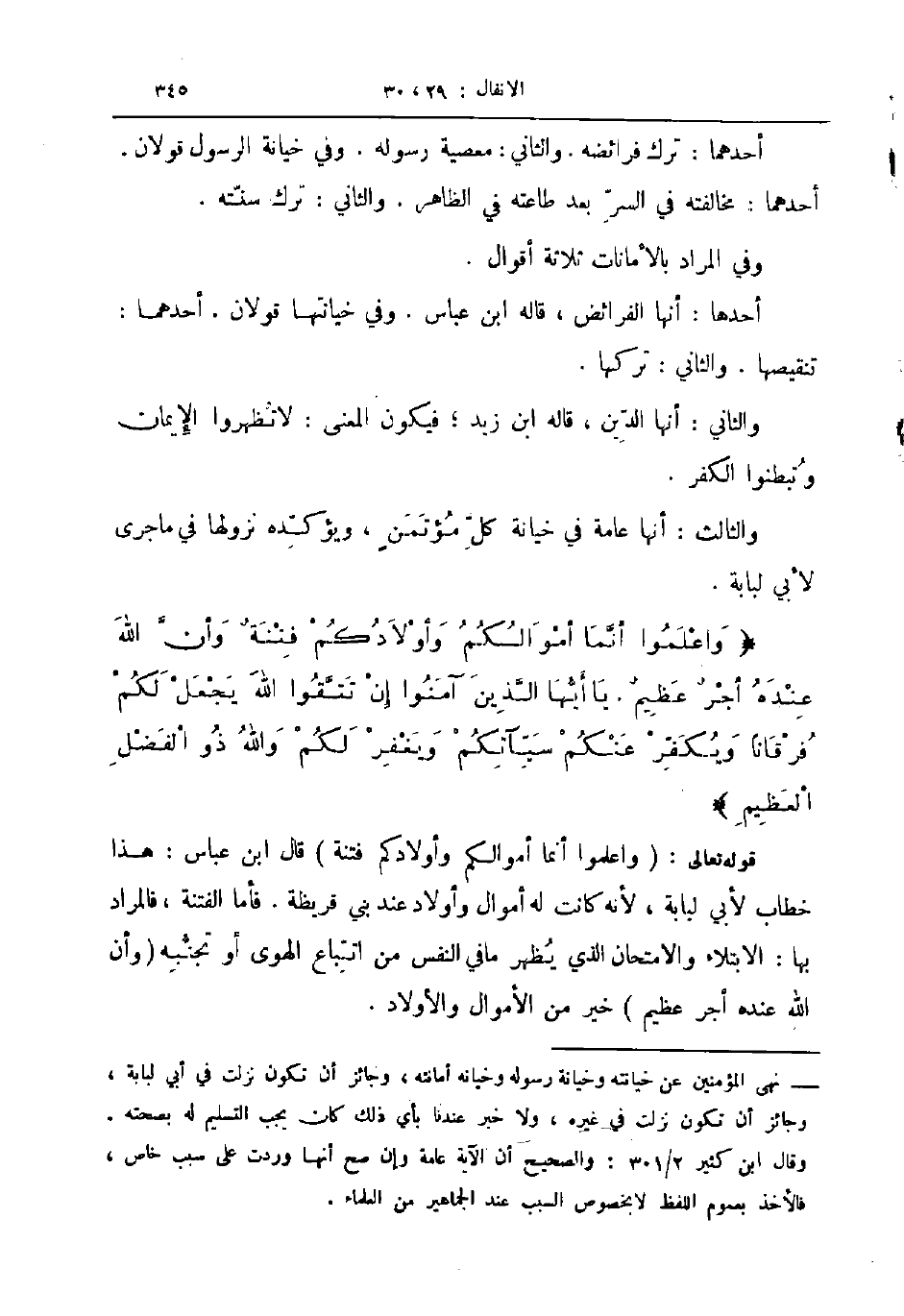 قوله تعالى واعلموا أنما أموالكم وأولادكم فتنة قال ابن عباس هذا خطاب لأبي لبابة لأنه كانت له أموال وأولاد عند بني قريظة فأما الفتنة فالمراد بها الابتلاء والامتحان الذي يظهر ما في النفس من اتباع الهوى أو تجنبه وأن الله عنده أجر عظيم خير من الأموال والأولاد