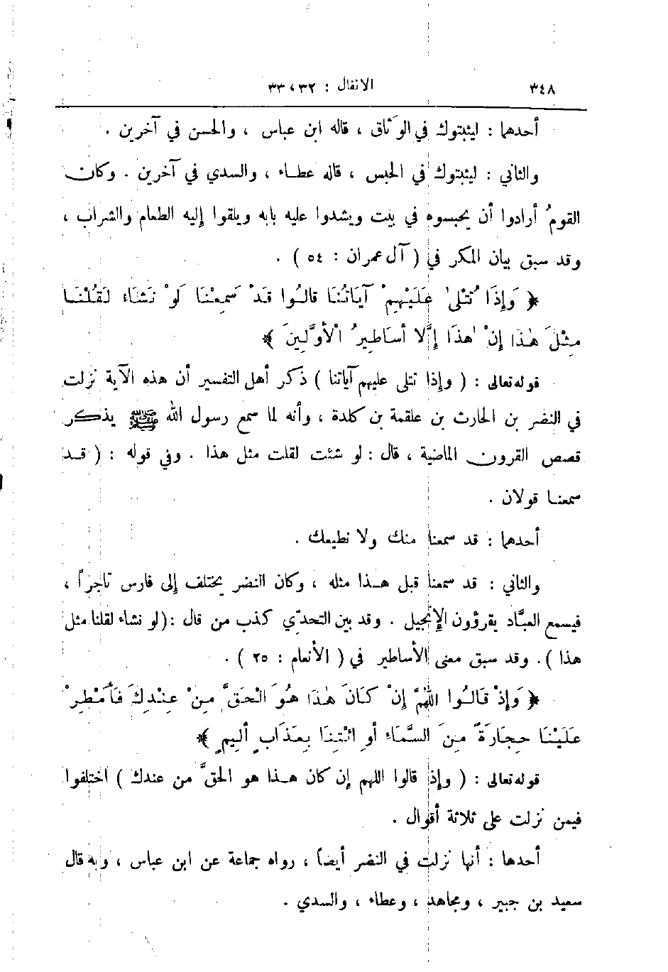 قوله تعالى وإذ قالوا اللهم إن كان هذا هو الحق من عندك اختلفوا فيمن نزلت على ثلاثة أقوال