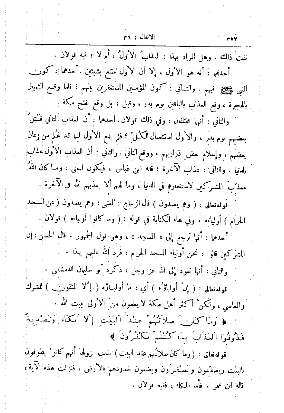 والثاني أنهما مختلفان وفي ذلك قولان أحدهما أن العذاب الثاني قتل بعضهم يوم بدر والأول استئصال الكل فلم يقع الأول لما قد علم من إيمان بعضهم وإسلام بعض ذراريهم ووقع الثاني والثاني أن العذاب الأول عذاب الدنيا والثاني عذاب الآخرة قاله ابن عباس فيكون المعنى وما كان الله معذب المشركين لاستغفارهم في الدنيا وما لهم ألا يعذبهم الله في الآخرة