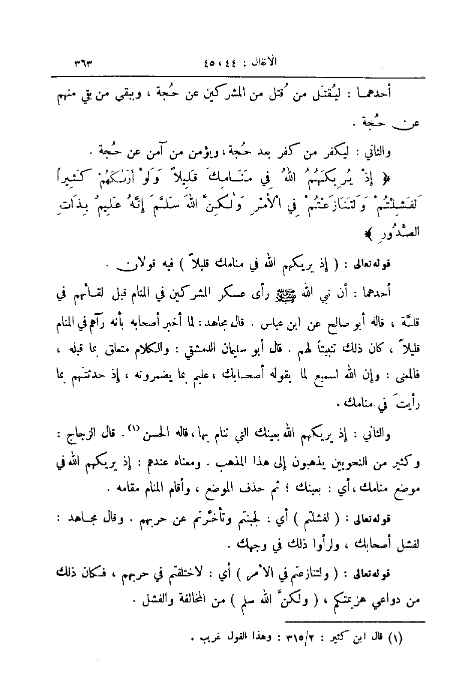 والثاني إذ يريكهم الله بعينك التي تنام بها قاله الحسن قال الزجاج وكثير من النحويين يذهبون إلى هذا المذهب ومعناه عندهم إذ يريكهم الله في موضع منامك أي بعينك ثم حذف الموضع واقام المنام مقامه
