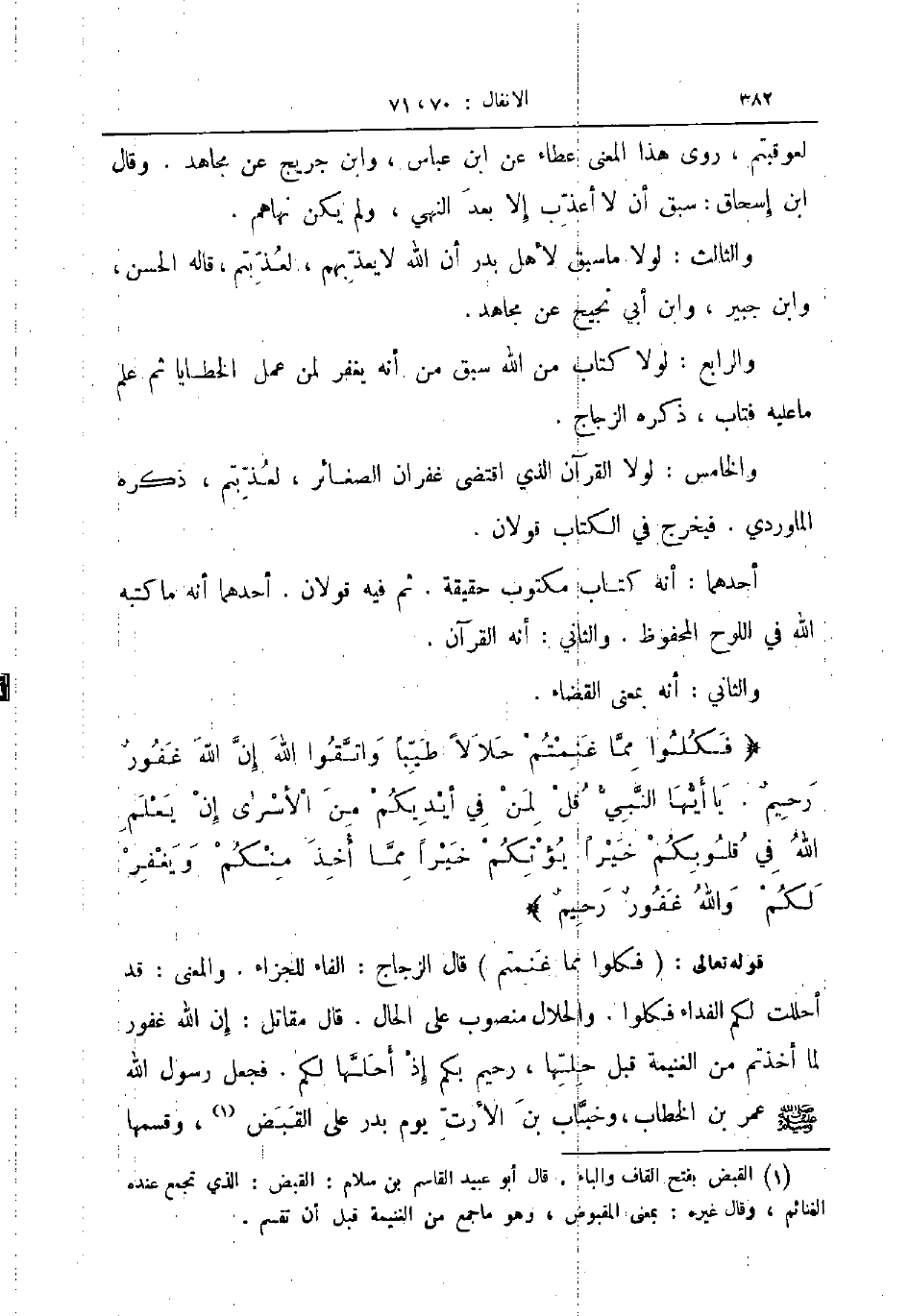 فكلوا مما غنمتم حلالا طيبا واتقوا الله إن الله غفور رحيم يا أيها النبي قل لمن في أيديكم من الأسرى إن يعلم الله في قلوبكم خيرا يؤتكم خيرا مما أخذ منكم ويغفر لكم والله غفور رحيم