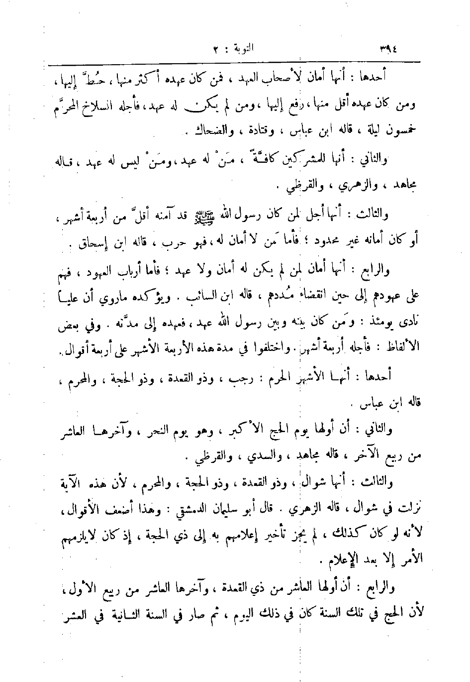 والثالث أنها أجل لمن كان رسول الله صلى الله عليه و سلم قد آمنه أقل من أربعة أشهر أو كان أمانه غير محدود فأما من لا أمان له فهو حرب قاله ابن اسحاق