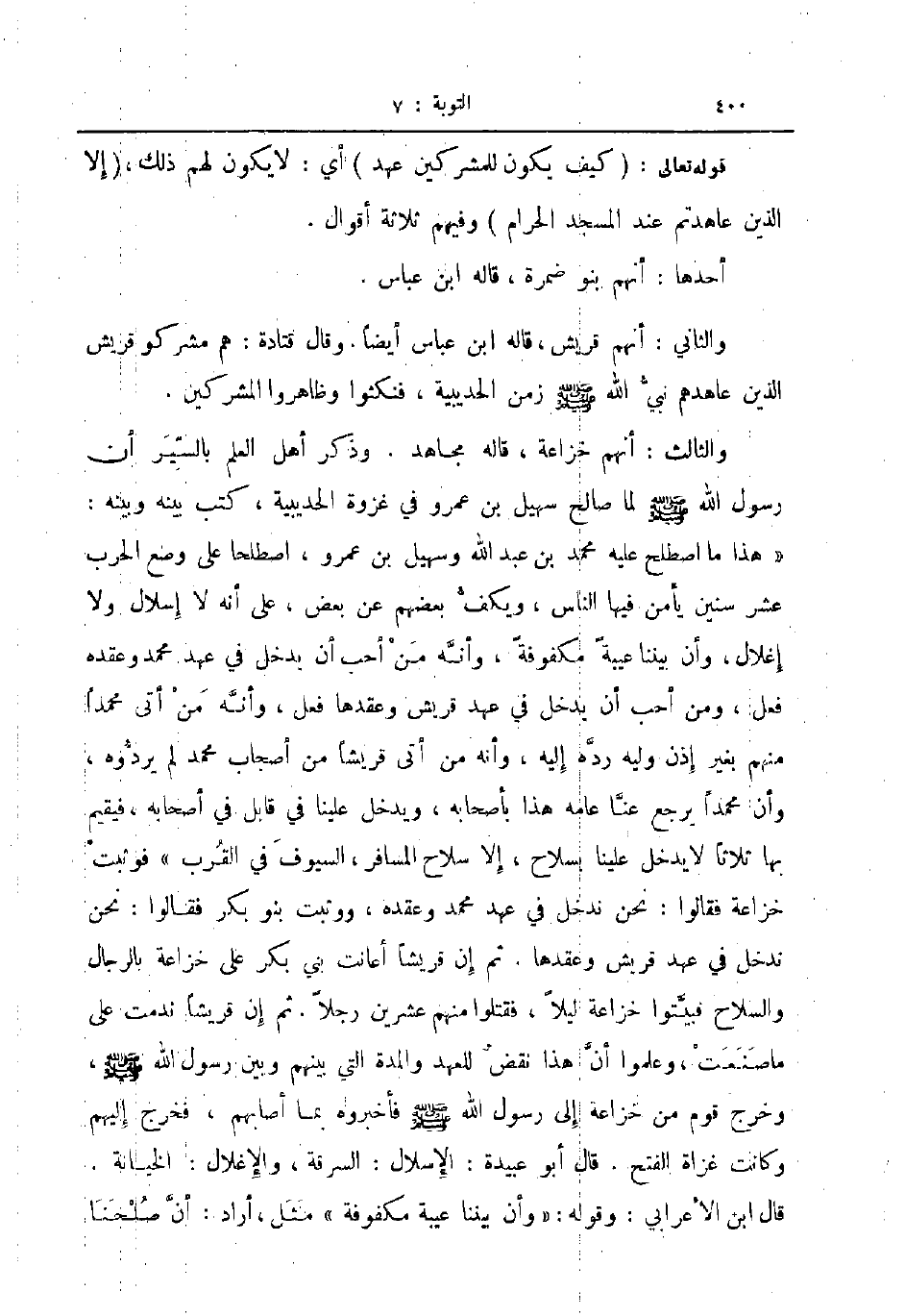 والثالث أنهم خزاعة قاله مجاهد وذكر أهل العلم بالسير أن رسول الله صلى الله عليه و سلم لما صالح سهيل بن عمرو في غزوة الحديبية كتب بينه وبينه هذا ما اصطلح عليه محمد بن عبد الله وسهيل بن عمرو اصطلحا على وضع الحرب عشر سنين يأمن فيها الناس ويكف بعضهم عن بعض على أنه لا إسلال ولا إغلال وأن بيننا عيبة مكفوفة وأنه من أحب أن يدخل في عهد محمد وعقده فعل ومن أحب أن يدخل في عهد قريش وعقدها فعل وأنه من أتى محمدا منهم بغير إذن وليه رده إليه وأنه من أتى قريشا من اصحاب محمد لم يردوه وأن محمدا يرجع عنا عامه هذا وأصحابه ويدخل علينا في قابل في أصحابه فيقيم بها ثلاثا لا يدخل علينا بسلاح إلا سلاح المسافر السيوف في القرب فوثبت خزاعة فقالوا نحن ندخل في عهد محمد وعقده ووثبت بنو بكر فقالوا نحن ندخل في عهد قريش وعقدها ثم إن قريشا أعانت بني بكر على خزاعة بالرجال والسلاح فبيتوا خزاعة ليلا فقتلوا منهم عشرين رجلا ثم إن قريشا ندمت على ما صنعت وعلموا أن هذا نقض للعهد والمدة التي بينهم وبين رسول الله صلى الله عليه و سلم وخرج قوم من خزاعة إلى رسول الله صلى الله عليه و سلم فأخبروه بما أصابهم فخرج إليهم وكانت غزاة الفتح قال أبو عبيدة الإسلال السرقة والإغلال الخيانة قال ابن الأعرابي وقوله وأن بيننا عيبة مكفوفة مثل أراد أن صلحنا