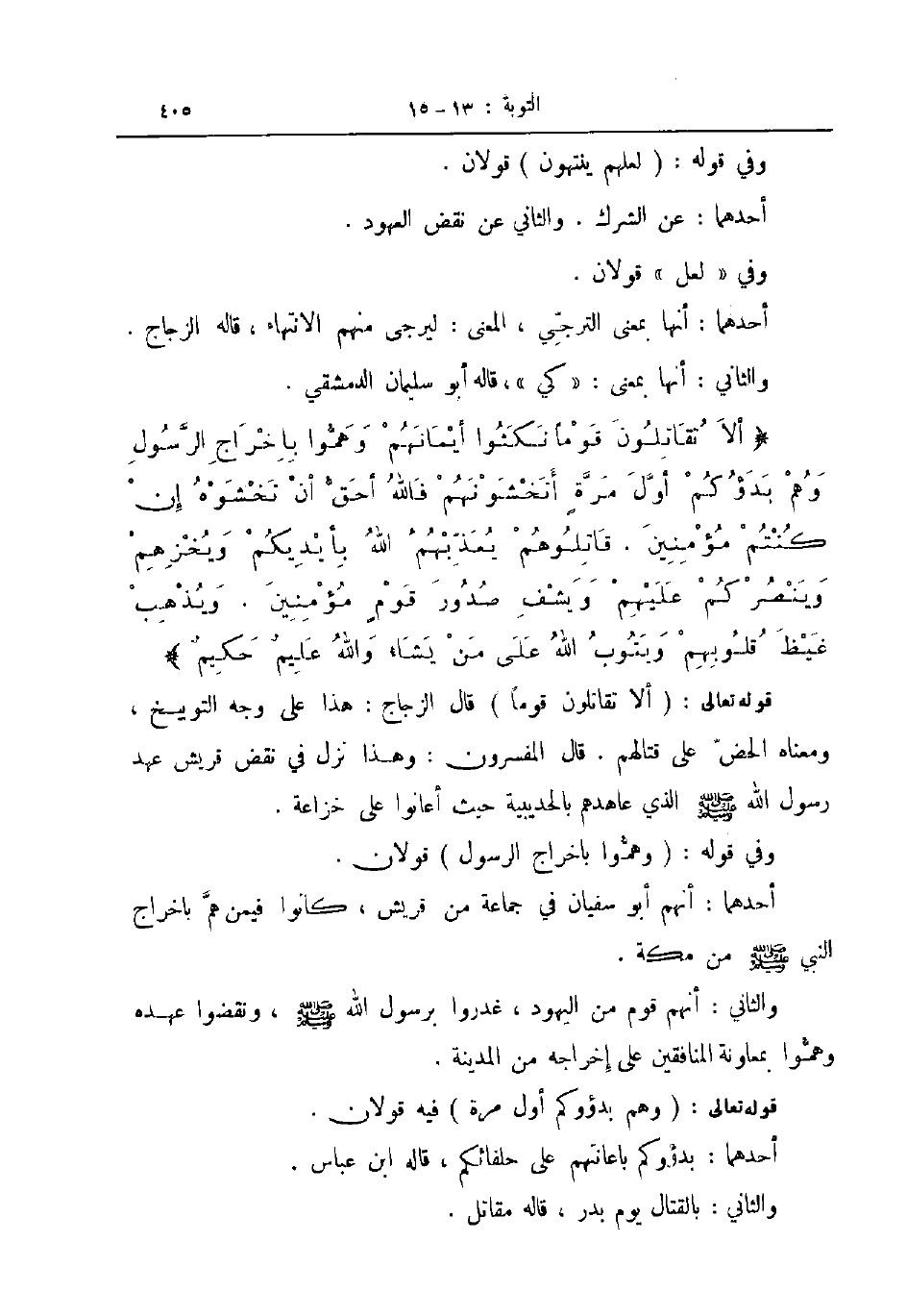 الا تقاتلون قوما نكثوا أيمانهم وهموا باخراج الرسول وهم بدؤكم أول مرة أتخشونهم فالله أحق أن تخشوه إن كنتم مؤمنين قاتلوهم يعذبهم الله بأيديكم ويخزهم وينصركم عليهم ويشف صدور قوم مؤمنين ويذهب غيظ قلوبهم ويتوب الله على من يشاء والله عليم حكيم