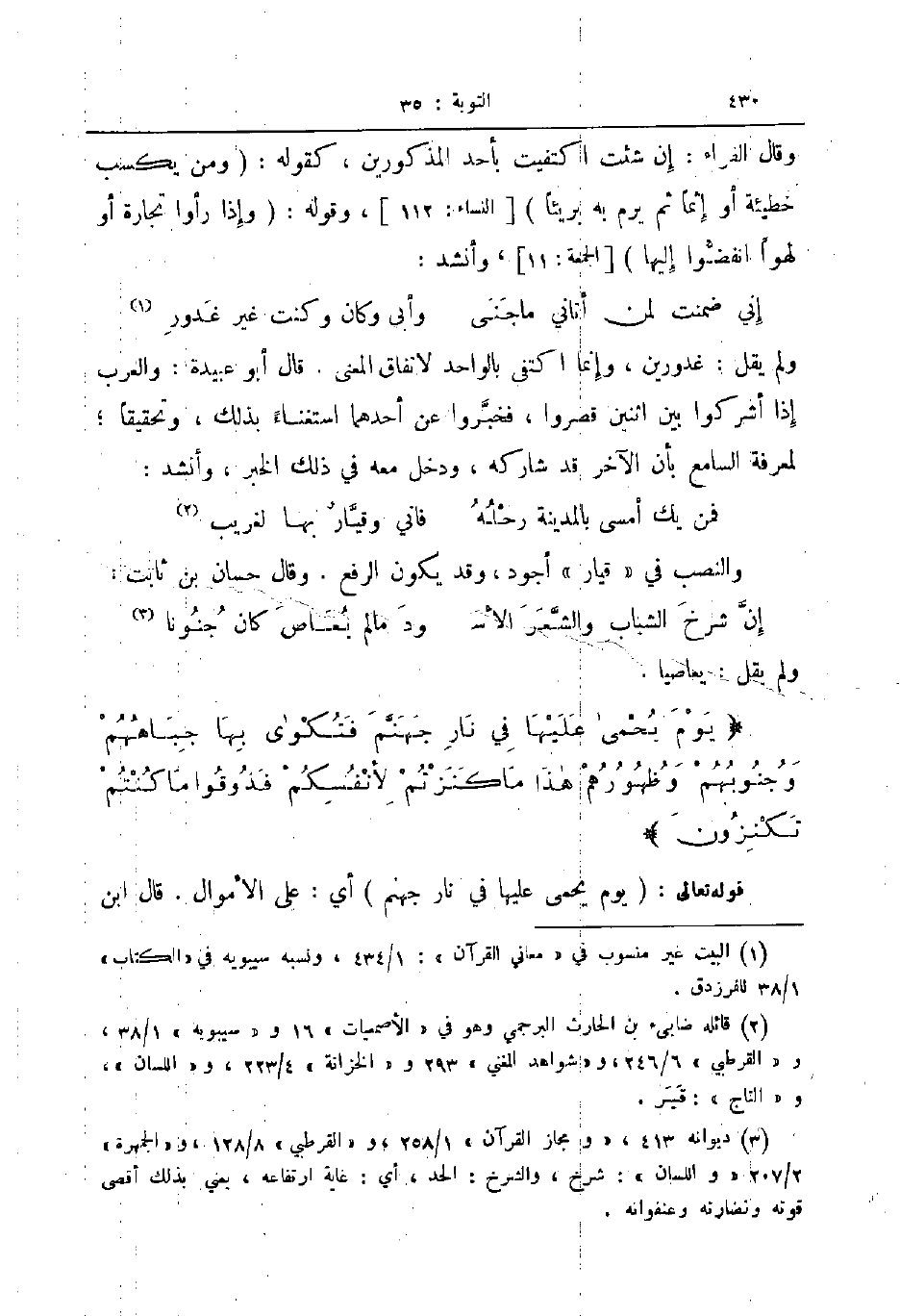 يوم يحمى عليهم في نار جهنم فتكوى بها جباههم وجنوبهم وظهورهم هذا ما كنزتم لأنفسكم فذوقوا ما كنتم تكنزون