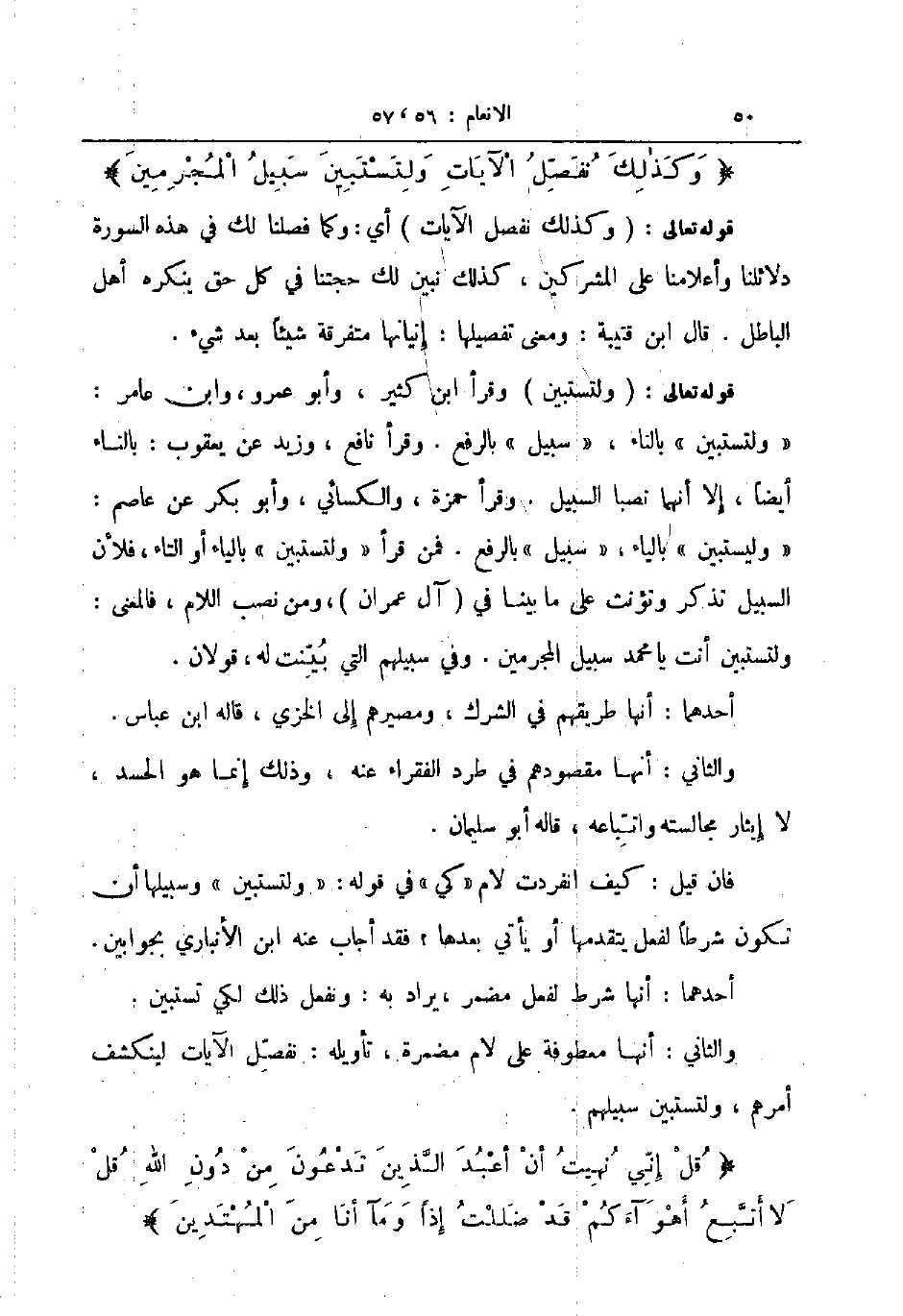 والثاني انها معطوفة على لام مضمرة تأويله نفصل الآيات ليتكشف أمرهم ولتستبين سبيلهم
