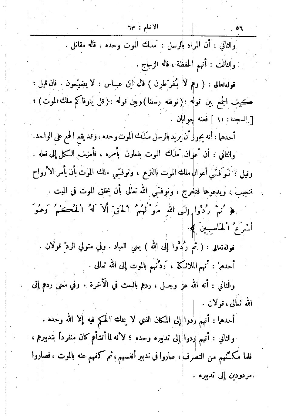 قوله تعالى وهم لا يفرطون قال ابن عباس لا يضيعون فان قيل كيف الجمع بين قوله توفته رسلنا وبين قوله قل يتوفاكم ملك الموت فعنه جوابان