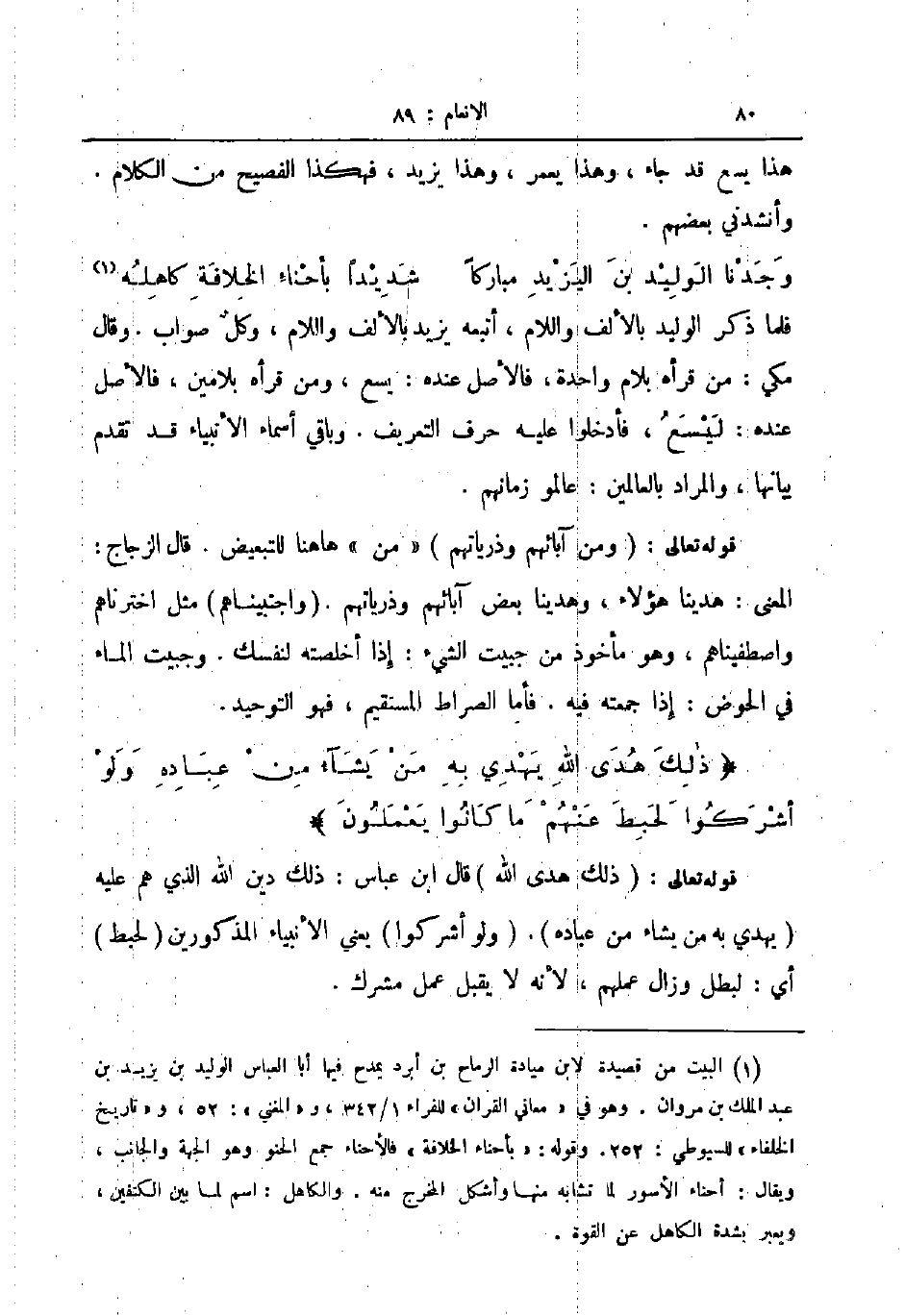 وجدنا الوليد بن اليزيد مباركا شديدا بأحناء الخلافة كاهله فلما ذكر الوليد بالألف واللام أتبعه يزيد بالألف واللام وكل صواب وقال مكي من قرأه بلام واحدة فالأصل عنده يسع ومن قرأه بلامين فالأصل عنده ليسع فأدخلوا عليه حرف التعريف وباقي أسماء الأنبياء قد تقدم بيانها والمراد بالعالمين عالمو زمانهم