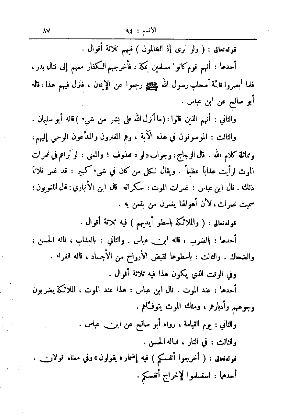 قوله تعالى والملائكة باسطو أيديهم فيه ثلاثة أقوال