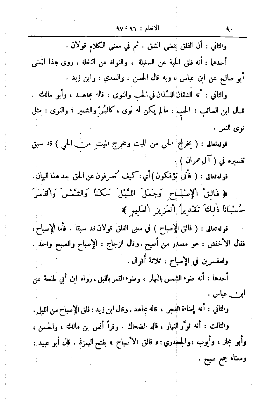وللمفسرين في الإصباح ثلاثة أقوال