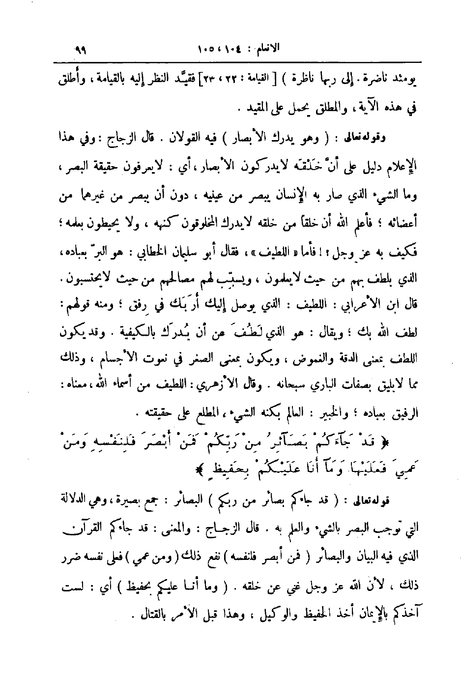 قوله تعالى قد جاءكم بصائر من ربكم البصائر جمع بصيرة وهي الدلالة التي توجب البصر بالشيء والعلم به قال الزجاج والمعنى قد جاءكم القرآن الذي فيه البيان والبصائر فمن أبصر فلنفسه نفع ذلك ومن عمي فعلى نفسه ضرر ذلك لأن الله عز و جل غني عن خلقه وما أنا عليكم بحفيظ أي لست آخذكم بالإيمان أخذ الحفيظ والوكيل وهذا قبل الأمر بالقتال