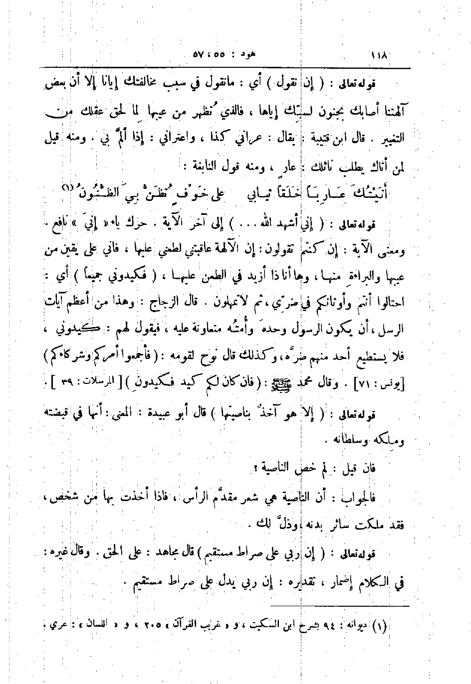 قوله تعالى إلا هو آخذ بناصيتها قال أبو عبيدة المعنى أنها في قبضته وملكه وسلطانه