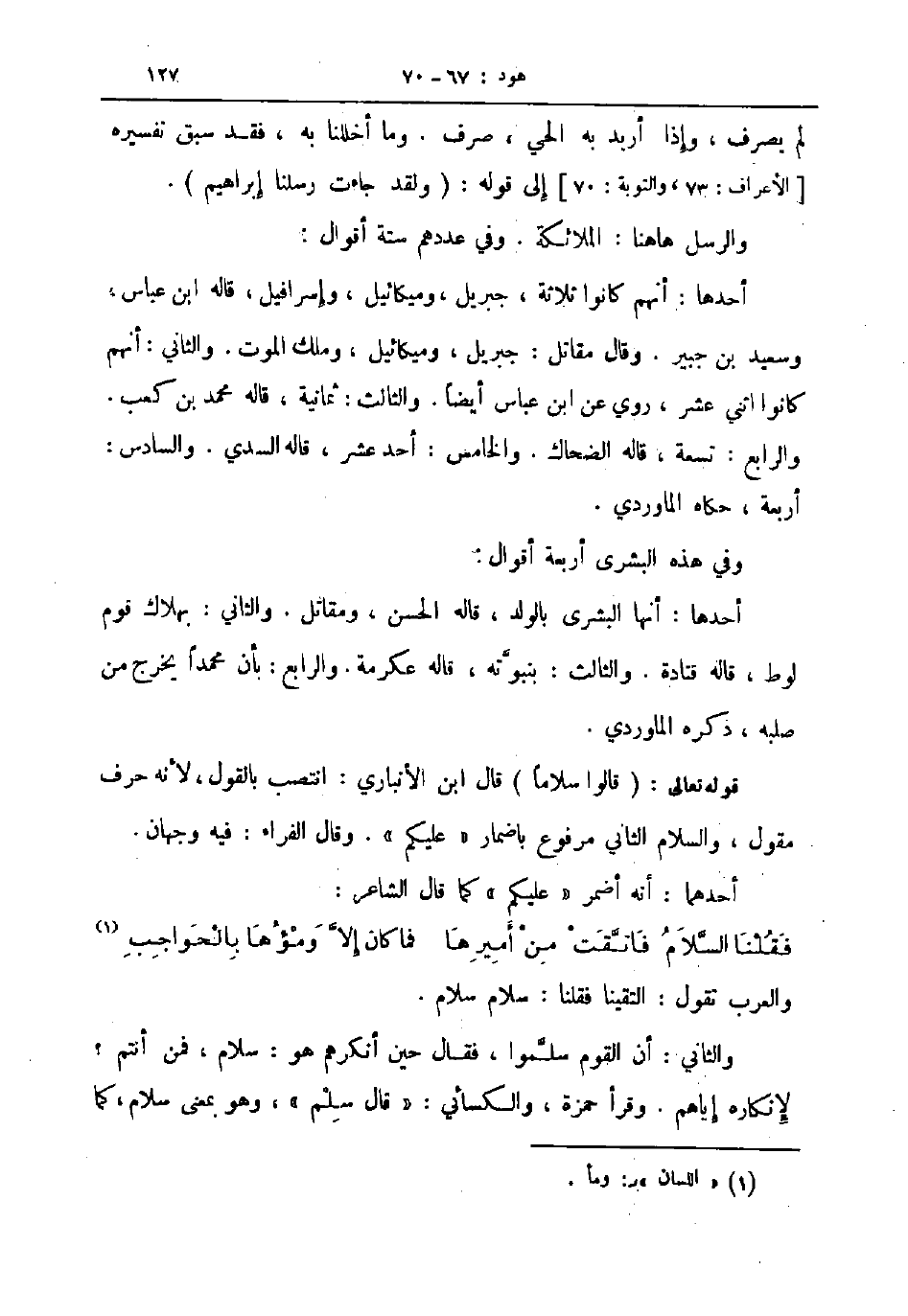 لم يصرف وإذا أريد به الحي صرف وما أخللنا به فقد سبق تفسيره الأعراف 73 والتوبة 70 إلى قوله ولقد جاءت رسلنا إبراهيم والرسل هاهنا الملائكة وفي عددهم ستة أقوال
