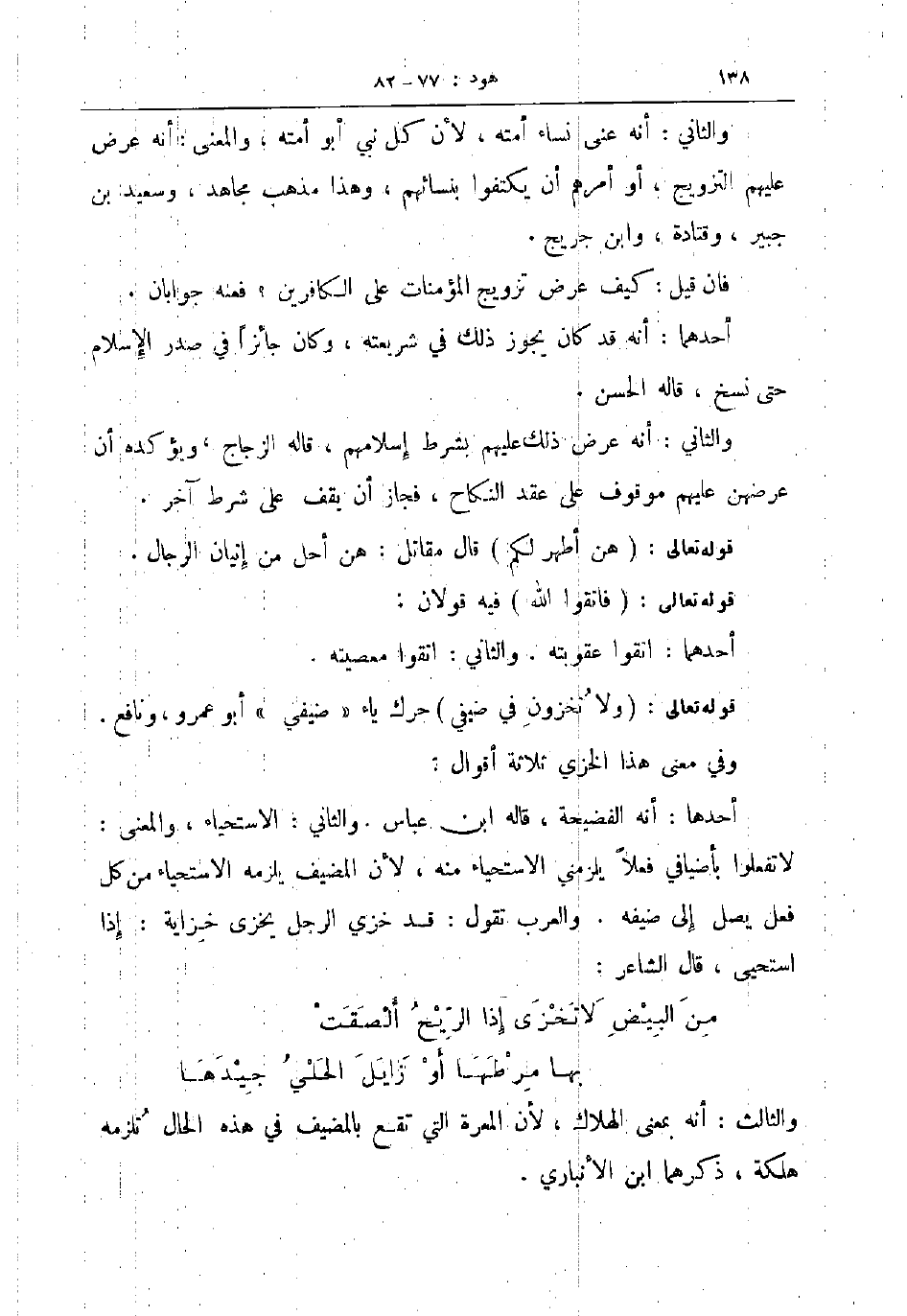 والثاني أنه عنى نساء أمته لأن كل نبي أبو أمته والمعنى أنه عرض عليهم التزويج أو أمرهم أن يكتفوا بنسائهم وهذا مذهب مجاهد وسعيد بن جبير وقتادة وابن جريج