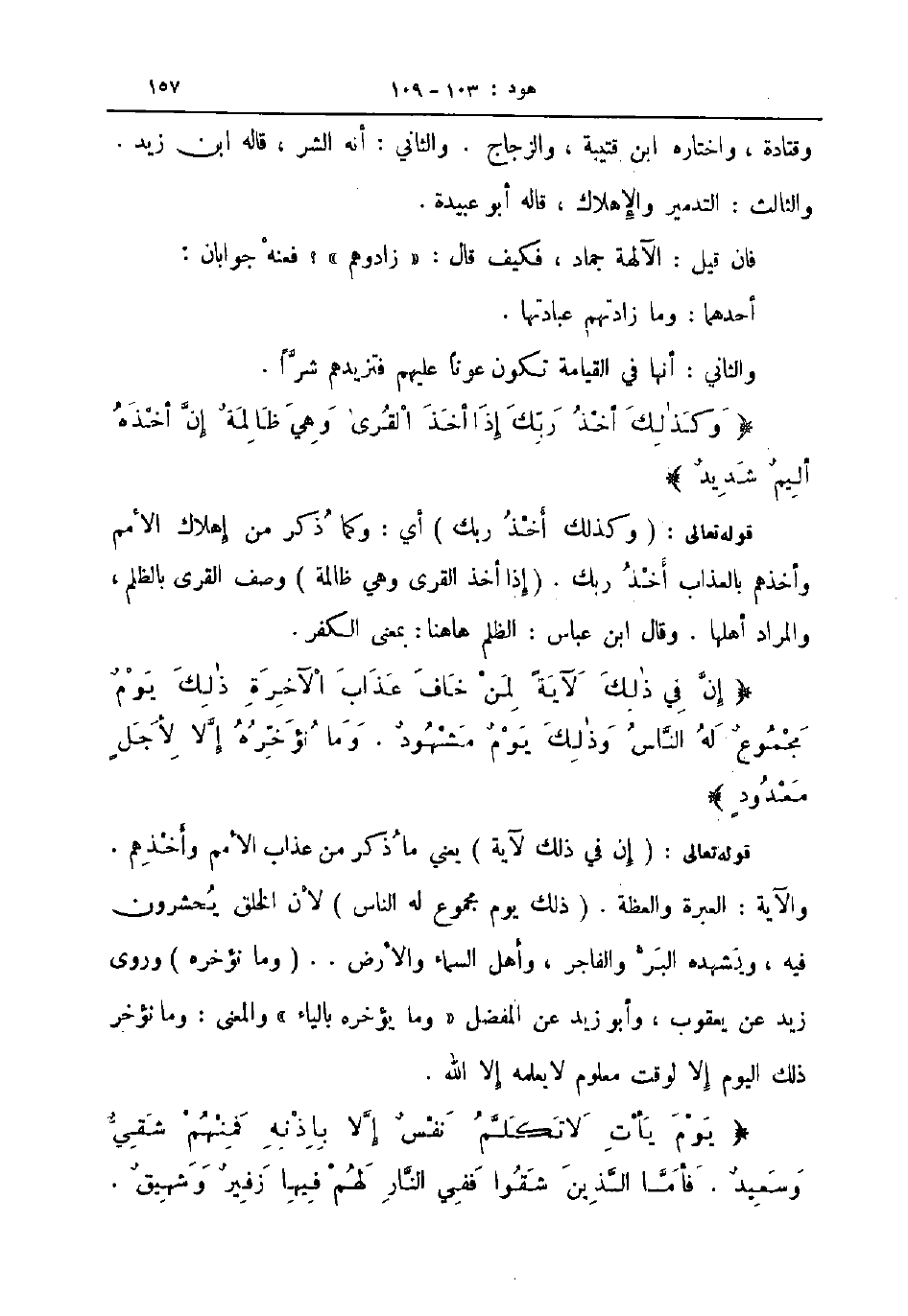 قوله تعالى إن في ذلك لآية يعني ما ذكر من عذاب الأمم وأخذهم والآية العبرة والعظة ذلك يوم مجموع له الناس لأن الخلق يحشرون فيه ويشهده البر والفاجر وأهل السماء والأرض وما نؤخره وروى زيد عن يعقوب وابو زيد عن المفضل وما يؤخره بالياء والمعنى وما نؤخر ذلك اليوم إلا لوقت معلوم لا يعلمه إلا الله يوم يأت لا تكلم نفس إلا بإذنه فمنهم شقي وسعيد فأما الذين شقوا ففي النار لهم فيها زفير وشهيق