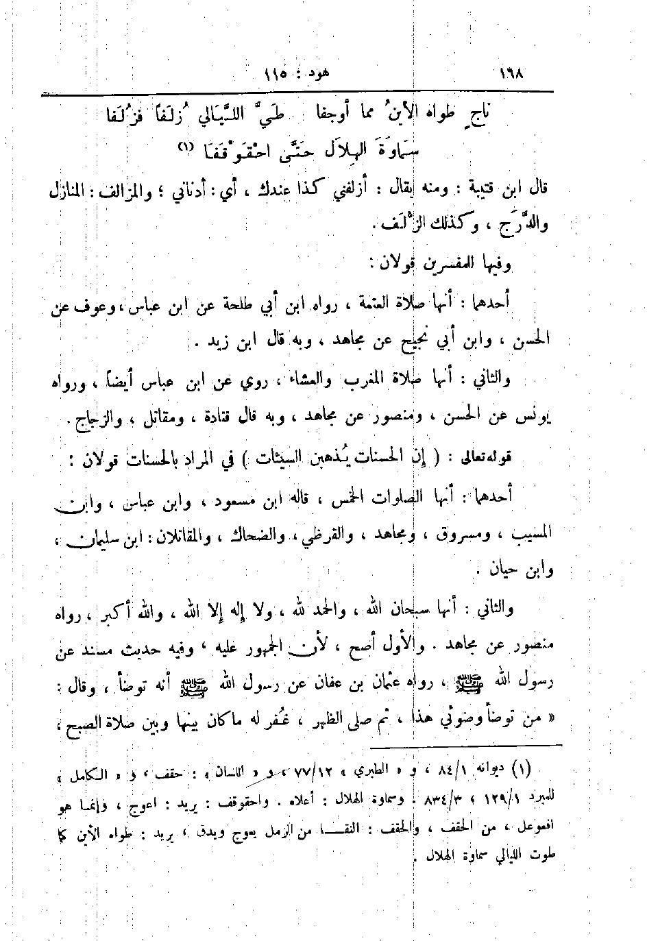 والثاني أنها صلاة المغرب والعشاء روي عن ابن عباس أيضا ورواه يونس عن الحسن ومنصور عن مجاهد وبه قال قتادة ومقاتل والزجاج