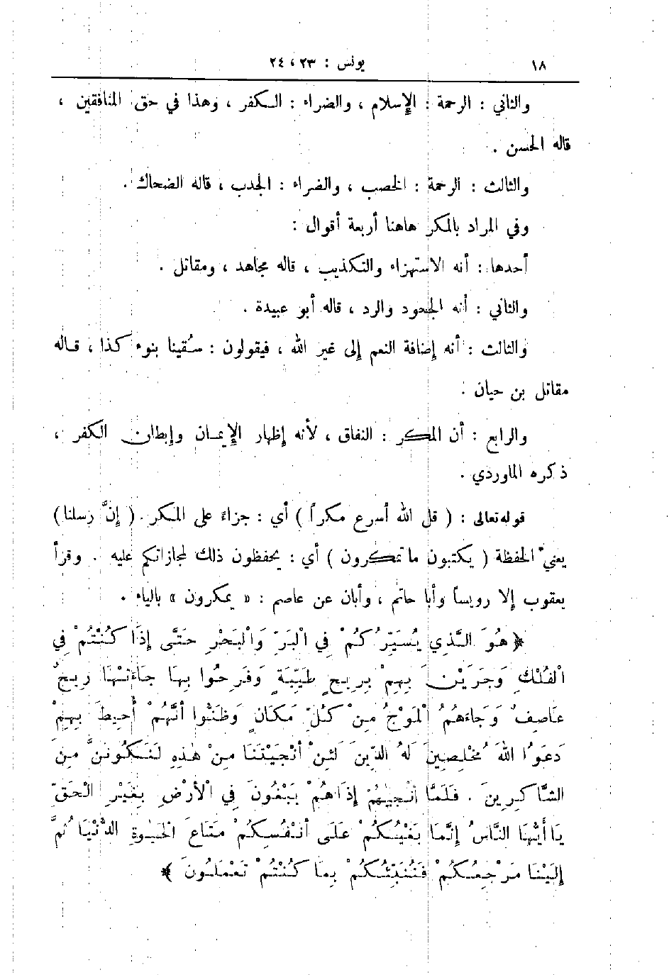 قوله تعالى قل الله أسرع مكرا أي جزاء على المكر إن رسلنا يعني الحفظة يكتبون ما تمكرون أي يحفظون ذلك لمجازاتكم عليه وقرأ يعقوب إلا رويسا وأبا حاتم وأبان عن عاصم يمكرون بالياء هو الذي يسيركم في البر والبحر حتى إذا كنتم في الفلك وجرين بهم بريح طيبة وفرحوا بها جاءتها ريح عاصف وجاءهم الموج من كل مكان وظنوا أنهم أحيط بهم دعوا الله مخلصين له الدين لئن أنجيتنا من هذه لنكونن من الشاكرين فلما انجيناهم إذا هم يبغون في الأرض بغير الحق يا أيها الناس إنما بغيكم على أنفسكم متاع الحياة الدنيا ثم إلينا مرجعكم فننبئكم بما كنتم تعملون