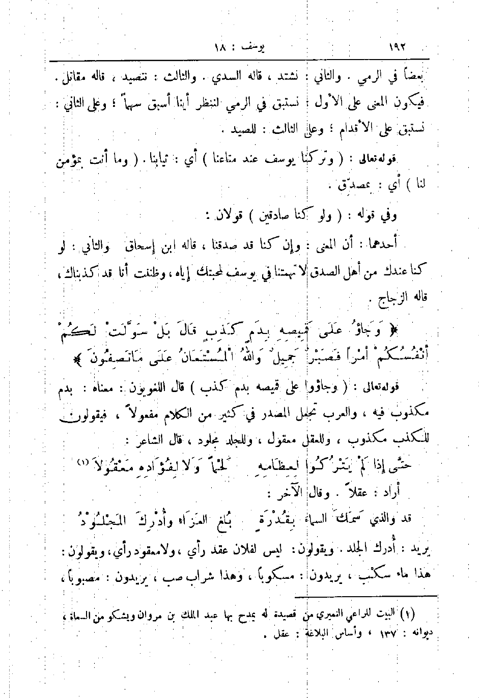 قوله تعالى وجاؤوا على قيصه بدم كذب قال اللغويون معناه بدم مكذوب فيه والعرب تجعل المصدر في كثير من الكلام مفعولا فيقولون للكذب مكذوب وللعقل معقول وللجلد مجلود قال الشاعر ... حتى إذا لم يتركوا لعظامه ... لحما ولا لفؤاده معقولا ...