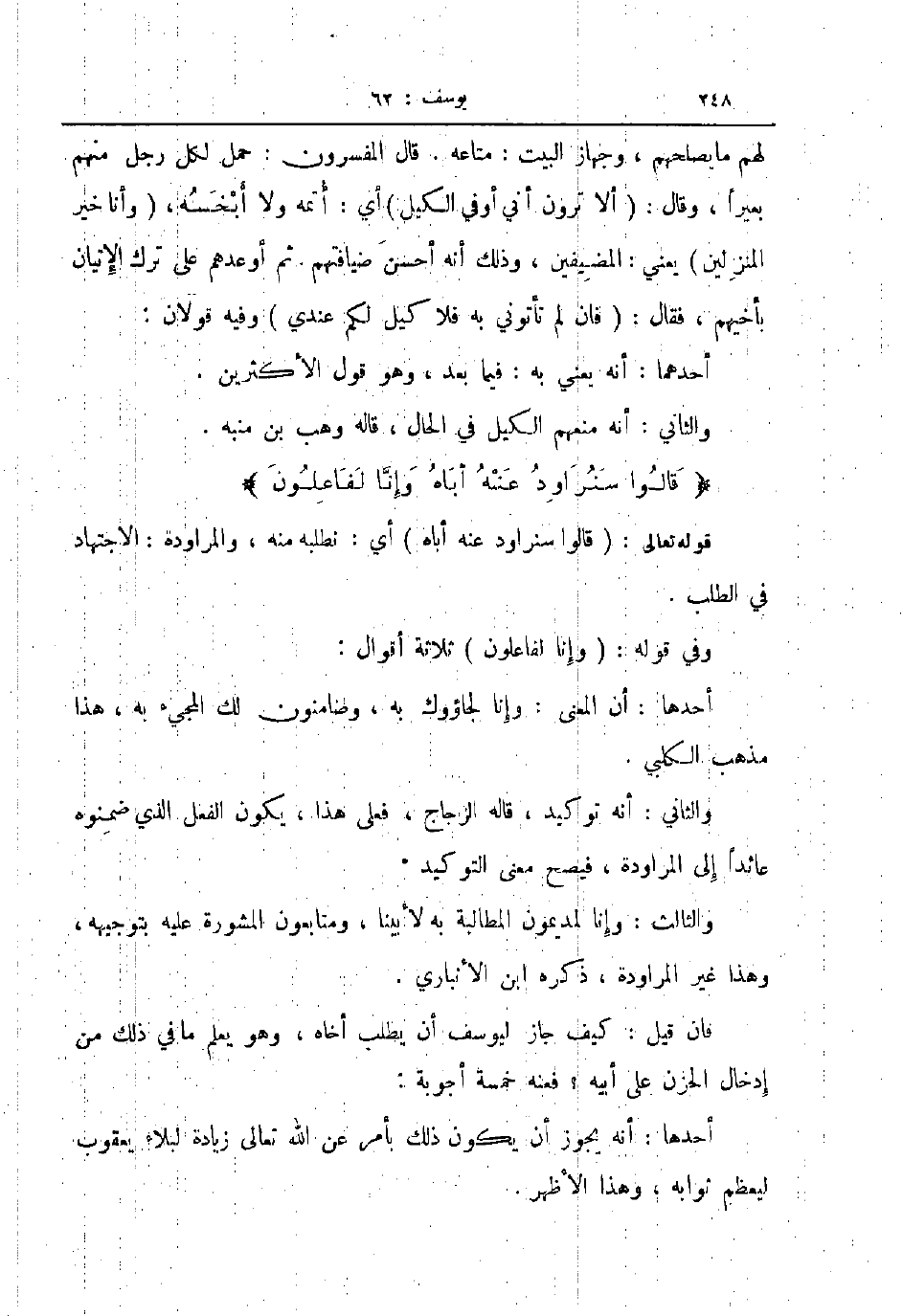 فإن قيل كيف جاز ليوسف أن يطلب أخاه وهو يعلم مافي ذلك من إدخال الحزن على أبيه فعنه خمسة أجوبة