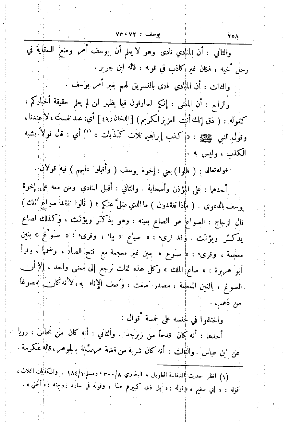 والثاني أن المنادي نادى وهو لا يعلم أن يوسف أمر بوضع السقاية في رحل أخيه فكان غير كاذب في قوله قاله ابن جرير