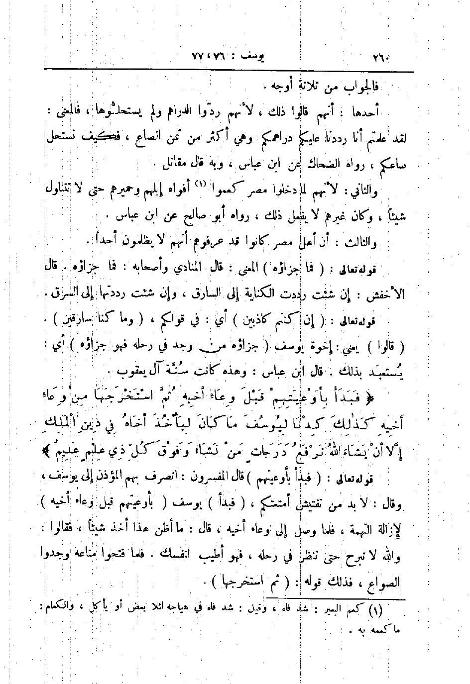 قوله تعالى فبدأ بأوعيتهم قال المفسرون انصرف بهم المؤذن إلى يوسف وقال لا بد من تفتيش أمتعتكم فبدأ يوسف بأوعيتهم قبل وعاء أخيه لإزالة التهمة فلما وصل إلى وعاء أخيه قال ما أظن هذا أخذ شيئا فقالوا والله لا نبرح حتى تنظر في رحله فهو أطيب لنفسك فلما فتحوا متاعه وجدوا الصواع فذلك قوله ثم استخرجها