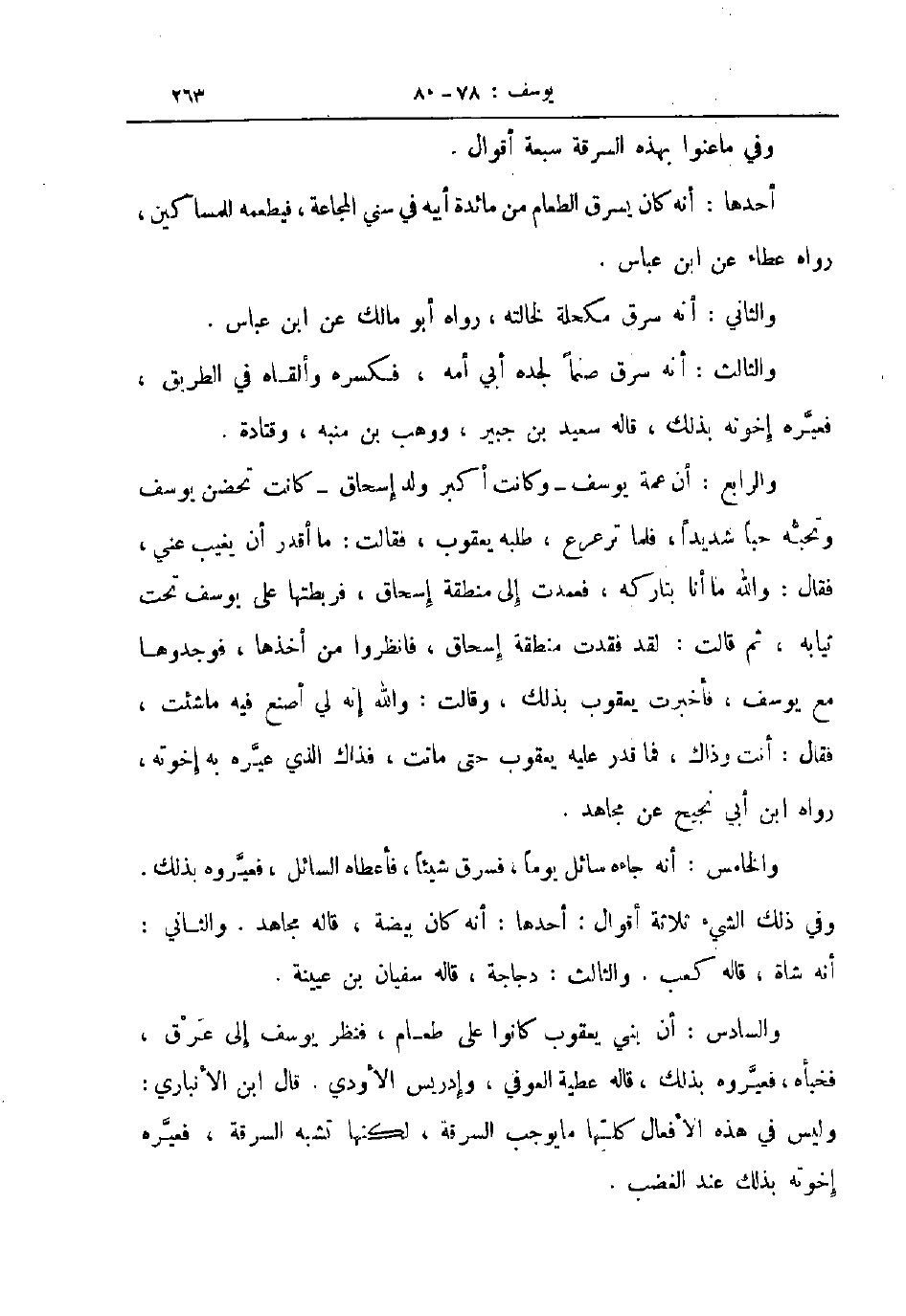 والسادس أن بني يعقوب كانوا على طعام فنظر يوسف إلى عرق فخبأه فعيروه بذلك قاله عطية العوفي وإدريس الأودي قال ابن الأنباري وليس في هذه الأفعال كلها ما يوجب السرقة لكنها تشبه السرقة فعيره إخوته بذلك عند الغضب