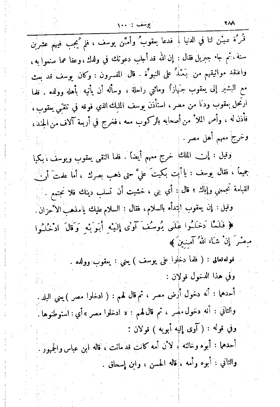 وقيل إن يعقوب ابتدأه بالسلام فقال السلام عليكم يا مذهب الأحزان فلما دخلوا على يوسف آوى إليه ابويه وقال ادخلوا مصر إن شاء الله آمنين