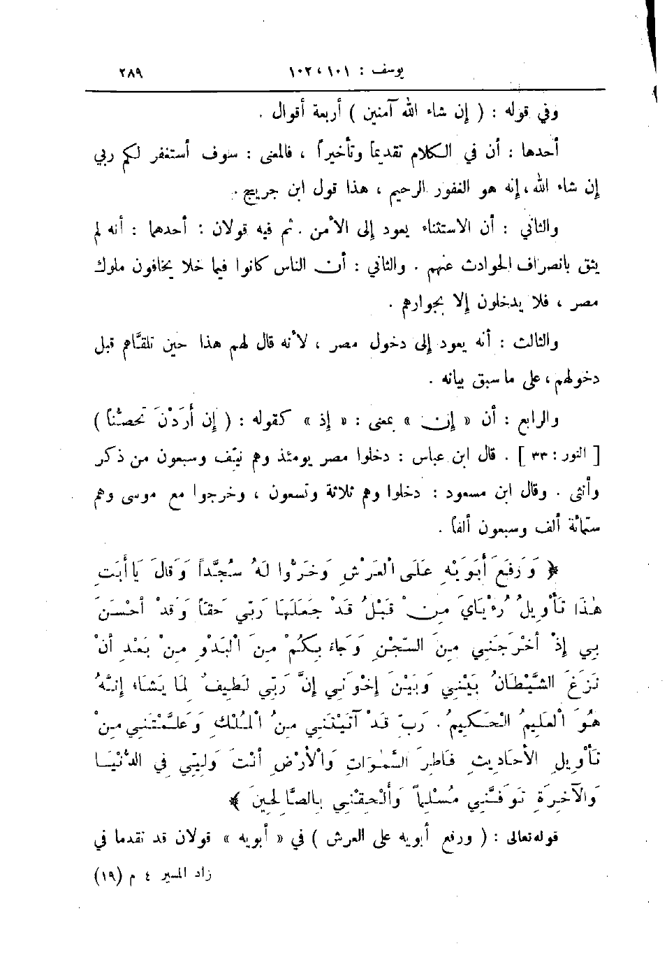 والرابع أن إن بمعنى إذ كقوله إن أردن تحصنا النور 33 قال ابن عباس دخلوا مصر يومئذ وهم نيف وسبعون من ذكر وأنثى وقال ابن مسعود دخلوا وهم ثلاثة وتسعون وخرجوا مع موسى وهم ستمائة ألف وسبعون ألفا ورفع أبويه على العرش وخروا له سجدا وقال يا أبت هذا تأويل رءياي من قبل قد جعلها ربي حقا وقد أحسن بي إذ أخرجني من السجن وجاء بكم من البدو من بعد أن نزغ الشيطان بيني وبين إخوتي إن ربي لطيف لما يشاء إنه هو العليم الحكيم رب قد آتيتني من الملك وعلمتني من تأويل الأحاديث فاطر السموات والأرض أنت ولي في الدنيا والآخرة توفني مسلما وألحقني بالصالحين