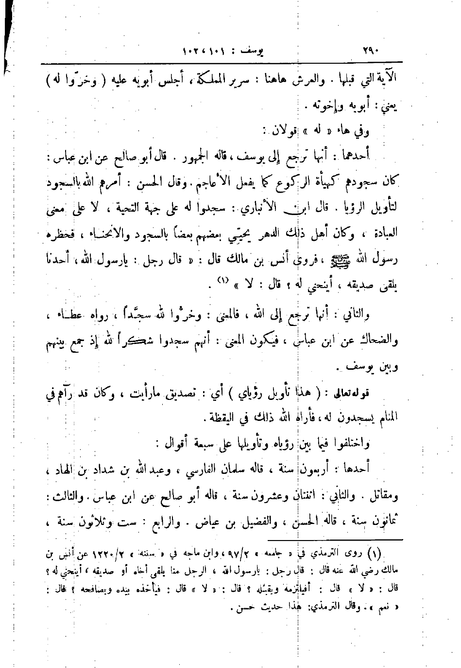 أحدهما أنها ترجع إلى يوسف قاله الجمهور قال أبو صالح عن ابن عباس كان سجودهم كهيأة الركوع كما يفعل الأعاجم وقال الحسن أمرهم الله بالسجود لتأويل الرؤيا قال ابن الأنباري سجدوا له على جهة التحية لا على معنى العبادة وكان أهل ذلك الدهر يحيى بعضهم بعضا بالسجود والانحناء فحظره رسول الله صلى الله عليه و سلم فروى أنس بن مالك قال قال رجل يا رسول الله أحدنا يلقى صديقه اينحني له قال لا