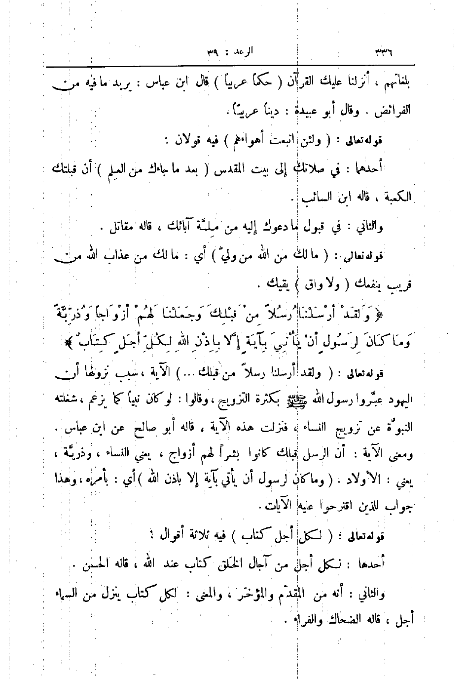 بلغاتهم أنزلنا عليك القرآن حكما عربيا قال ابن عباس يريد ما فيه من الفرائض وقال أبو عبيدة دينا عربيا