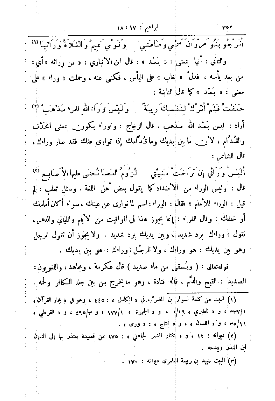 والثاني أنها بمعنى بعد قال ابن الأنباري من ورائه أي من بعد يأسه فدل خاب على اليأس فكنى عنه وحملت وراء على معنى بعد كما قال النابغة ... حلفت فلم أترك لنفسك ريبة ... وليس وراء الله للمرء مذهب ...