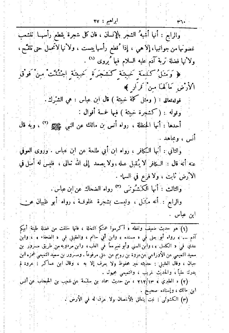 والرابع أنه مثل وليست بشجرة مخلوقة رواه أبوظبيان عن ابن عباس