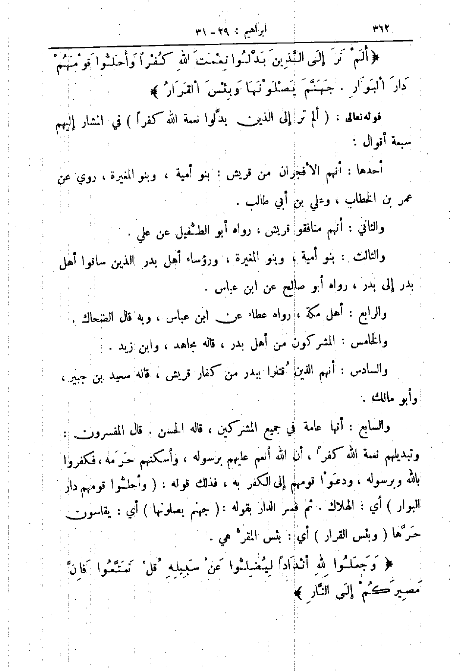 قوله تعالى ألم تر إلى الذين بدلوا نعمة الله كفرا في المشار إليهم سبعة أقوال